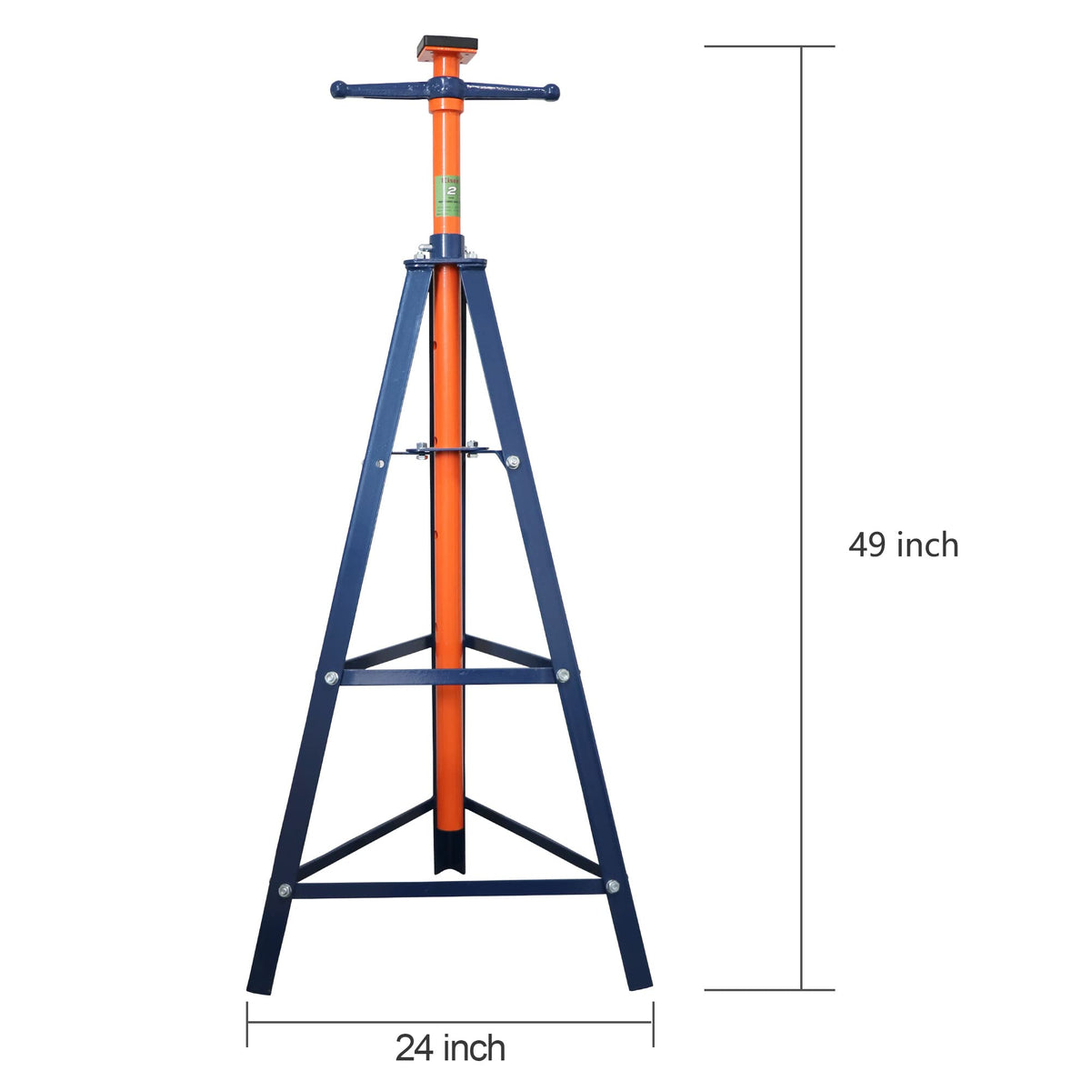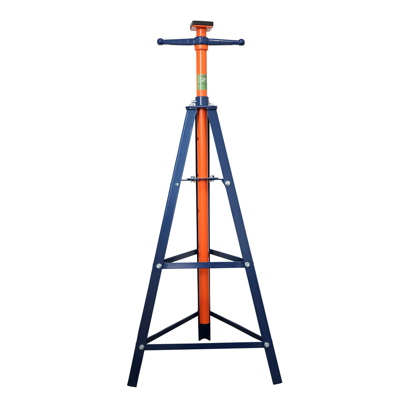 Q: What materials are used in the construction of this underhoist support stand?A: The stand is made of high-quality alloy steel with a corrosion-resistant blue-painted finish, ensuring durability and long-lasting performance.