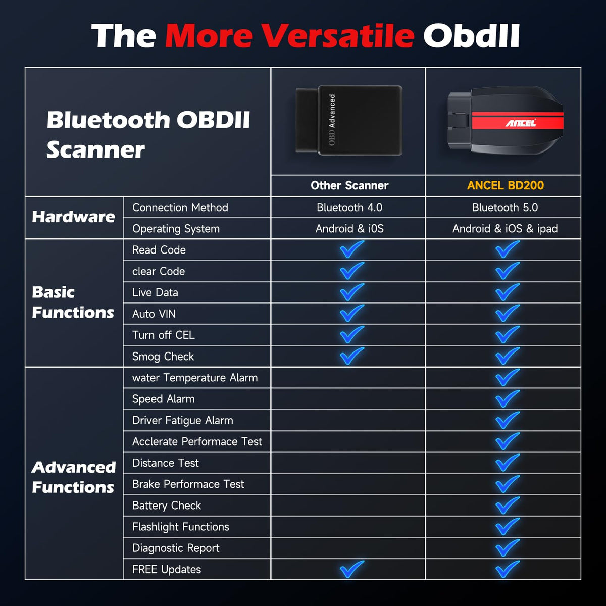Ancel Bd200 Bluetooth Obd2 Code Reader Is Designed For Checking Engine System Faults And Turning Off The Mil. Compared With General Readers, Except For Supporting Full Obdii Modes, It Can Also Detect Battery Voltage, Features Customized Data Dashboard, Vehicle Performance Tests Of Acceleration, Brake And Distance, Detailed Analysis For Each Trip, Voice Alarm For Driving Safely. The Ancel App Has A Simple And Elegant Interface, Easy To Use Even For A Beginner. It'S Compatible With Both Ios And Android Devices.