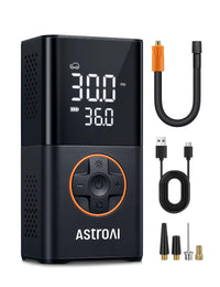 AstroAI Tire Inflator Portable Air Compressor Cordless Car Tire Pump Max150 PSI Bike Pump with LED Lights & Dual Values Display Air Pump for Cars, Motorcycles, Balls