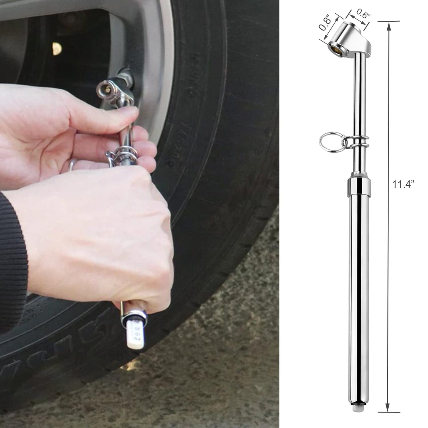Q: Is the ATsafepro Tire Pressure Gauge durable?A: Yes, the ATsafepro Tire Pressure Gauge is built with a heavy-duty structure. It features a zinc alloy chuck with a solid brass core and a chrome-plated steel body, ensuring durability in severe environments. This makes it a reliable tool for both men and women, suitable for everyday use.