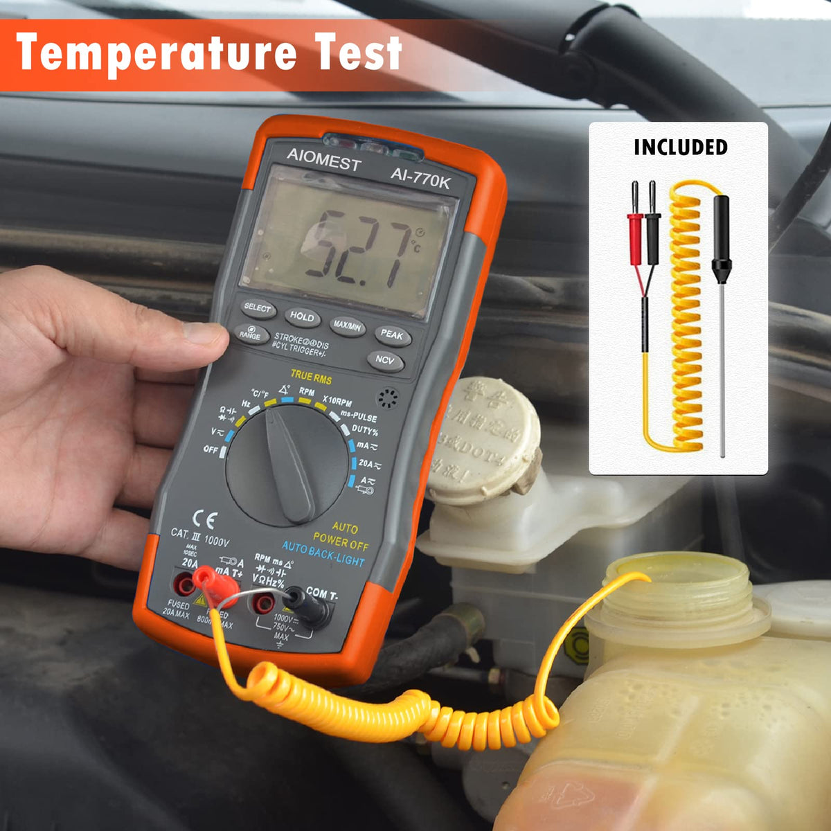Automotive Multimeter Engine Analyzer, Aiomest Digital Dmm Meter Ai-770K To Measure Car Dwell Angle, Rpm Tach, Injection Pulse,