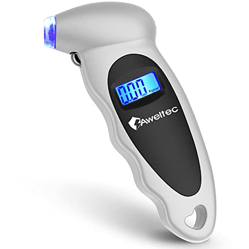 Aweltec Digital Tire Pressure Gauge 150 Psi, 4 Settings, Tire Gauge For Car, Truck, Motorcycle, Bicycle With Backlit Lcd And Non-Slip Grip (Silver)