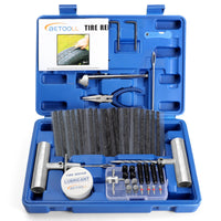 56-Piece Tire Repair Kit Includes Everything Needed For Quick And Easy Repair On Punctured Tires. Main Steps In Brief : 1. Remove The Nail From The Tire 2. Use A Threaded Drill To Drill A Large Leak Hole 3. Place The Strip In The Fork 4. Insert The Drills And Strips Into The Air Vent 5. Cut The Excess Tape With The Blade