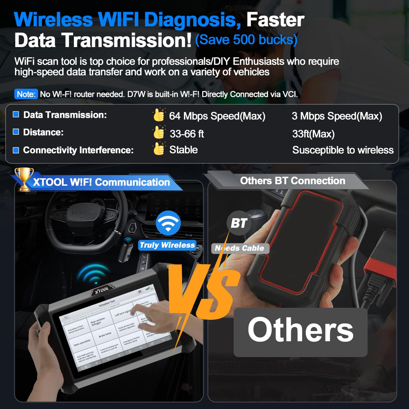 Bidirectional Scan Tool Xtool D7W: Wireless Ver. Of D7/D7S Scanner With 3-Year Updates, Ecu Coding, Can Fd&Doip, 36+ Resets, Key