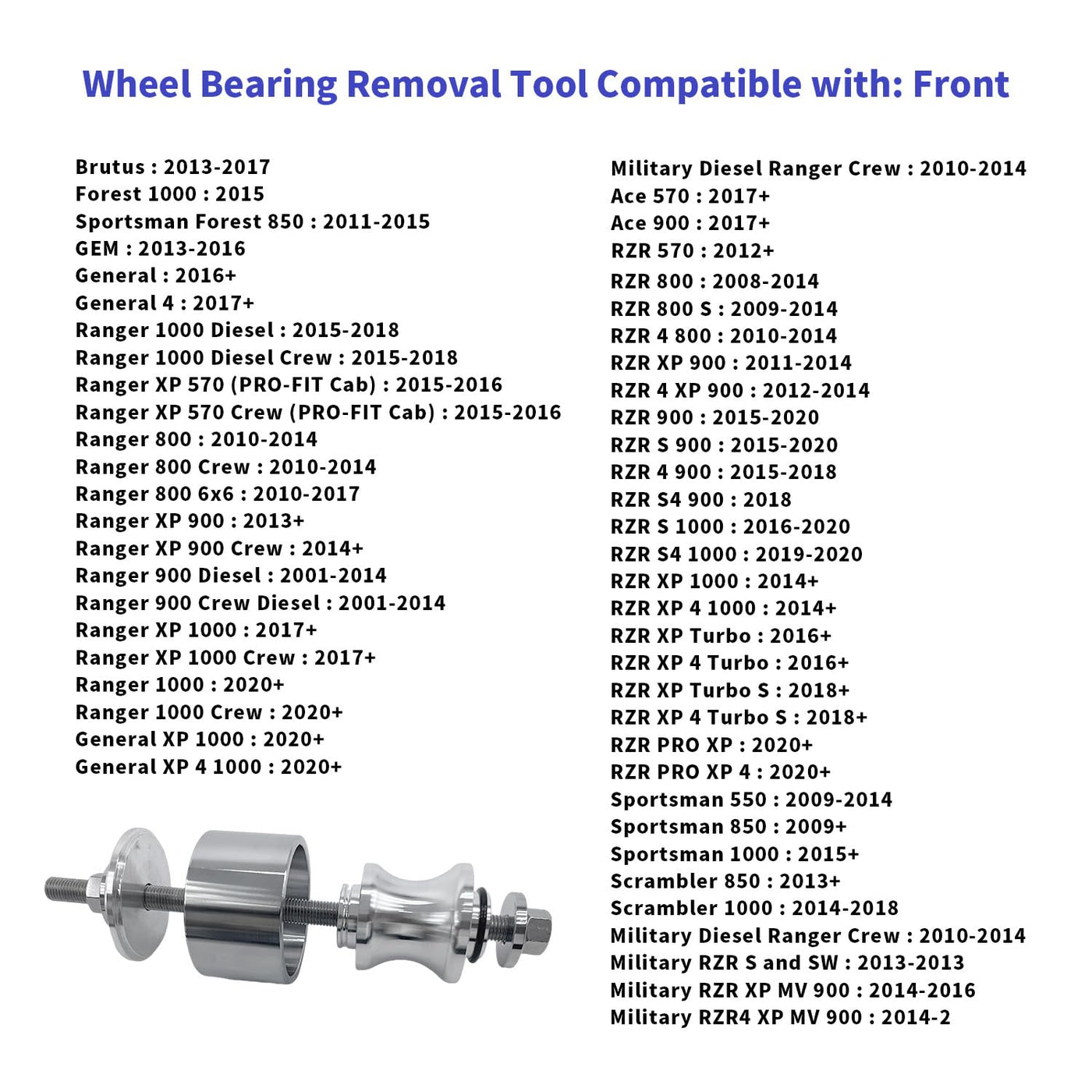 Q: Can I use this tool for different Polaris models?A: Absolutely! The BIGLKNM Wheel Bearing Removal Tool is versatile and compatible with numerous Polaris models, including the Ranger 1000, Ranger XP 900, General XP 1000, and many others, making it a valuable addition to your toolkit.