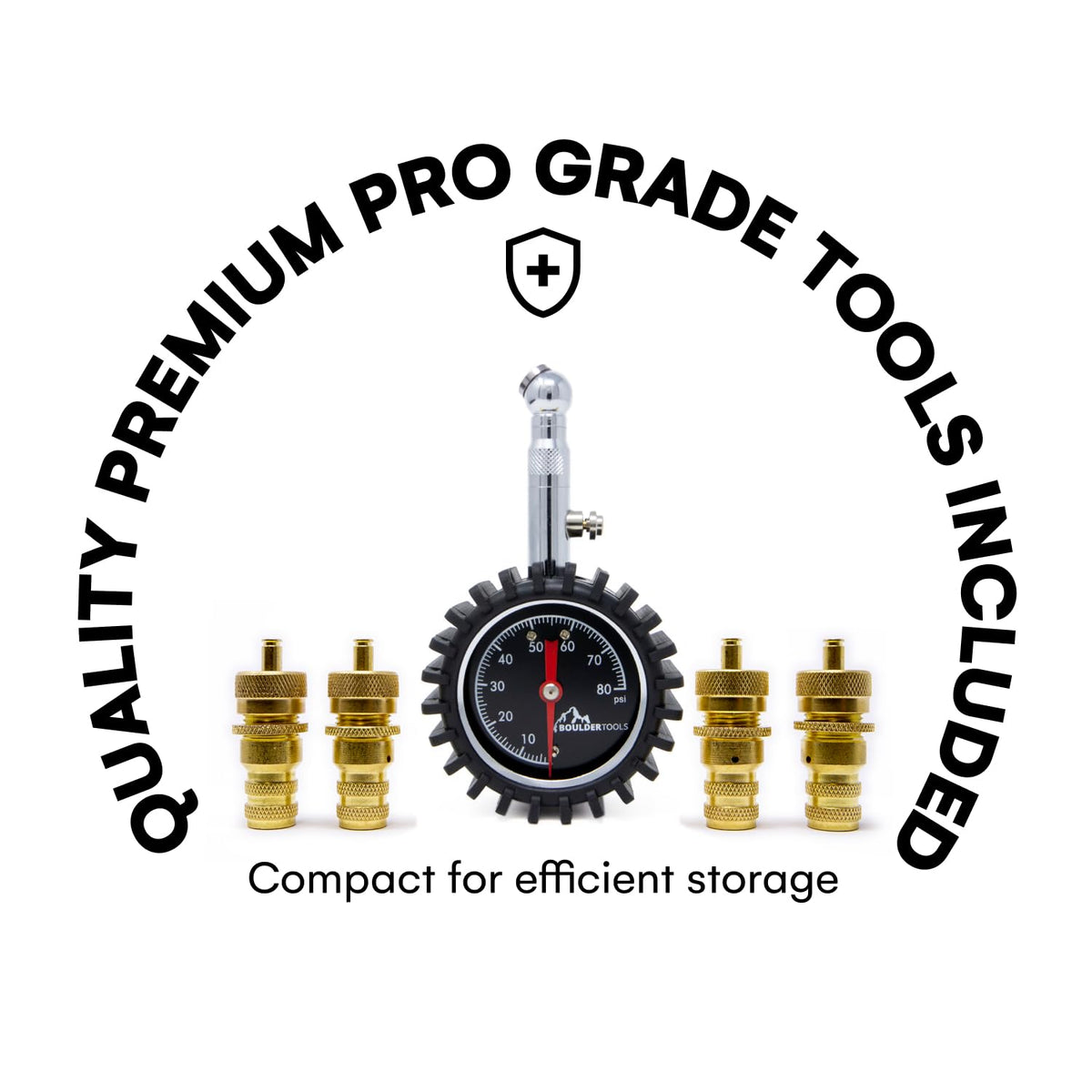 Boulder Tools Tire Deflator - 80 PSI Air Pressure Gauge - Adjustable, Automatic for Cars, Trucks and Motorcycles - Ideal Offroad