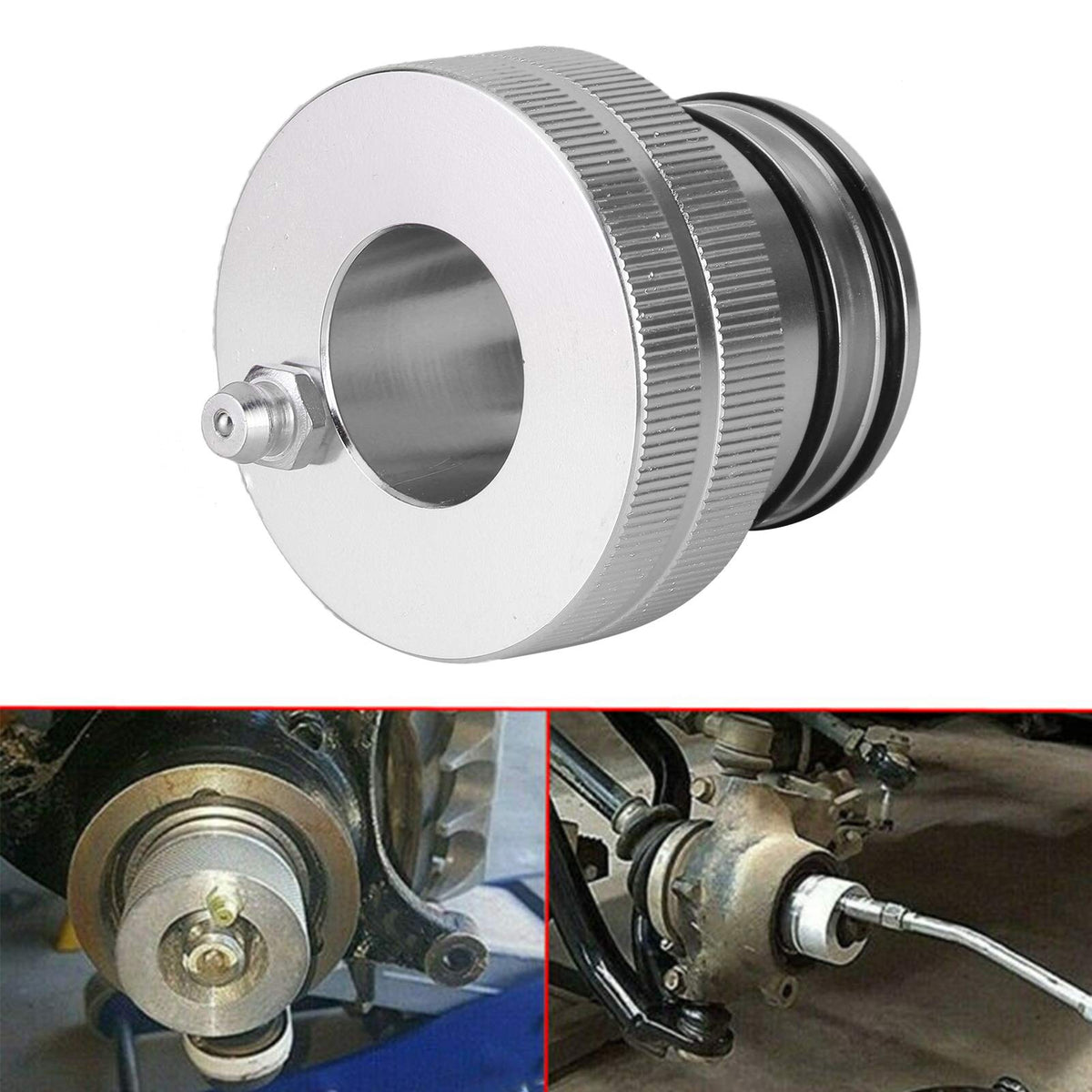 Q: How does the wheel bearing greaser tool improve maintenance?A: This wheel bearing greaser tool allows you to lubricate wheel bearings without removing the axle or wheel hub assembly. It effectively replenishes bearings with necessary grease while draining out contaminants, enhancing the longevity and performance of your vehicle's wheel bearings.