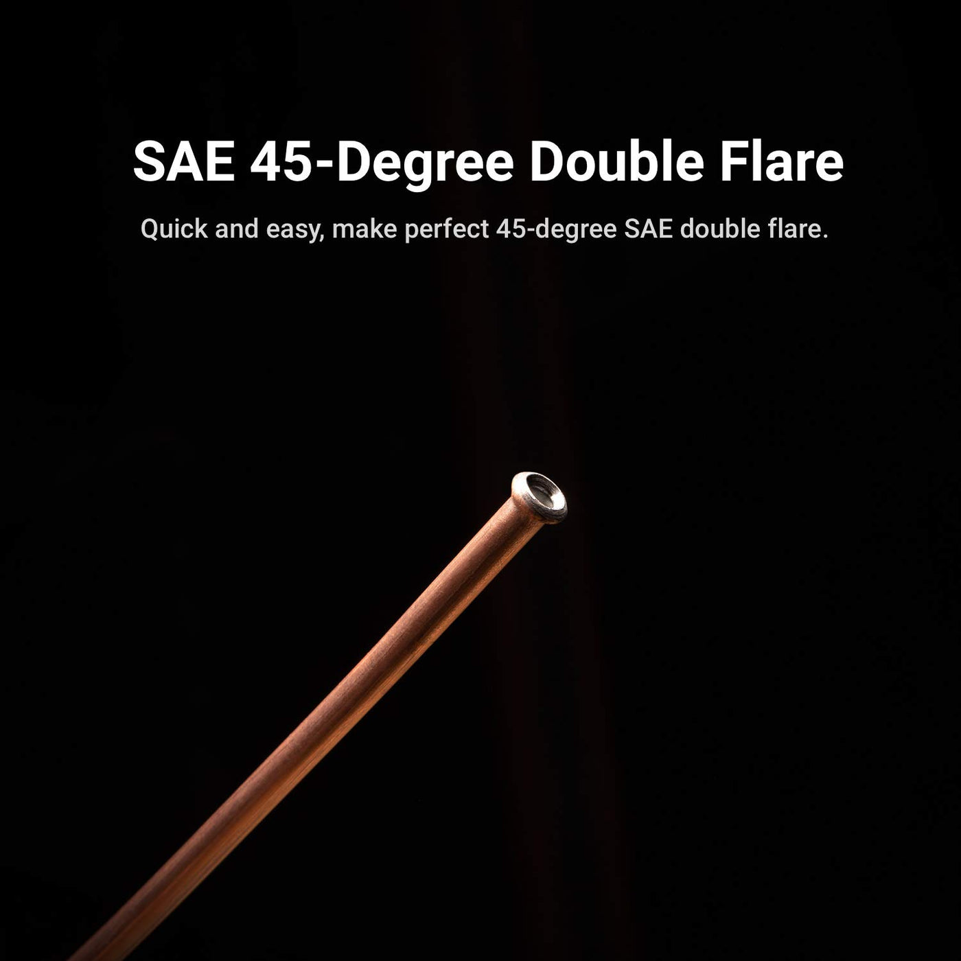 Q: How does this flaring tool improve the efficiency of creating double flares?A: The Capri Tools Double Flaring Tool allows users to create perfect 45-degree SAE double flares in half the time compared to old generation flaring tools, significantly improving efficiency and reducing the time spent on flaring tasks.
