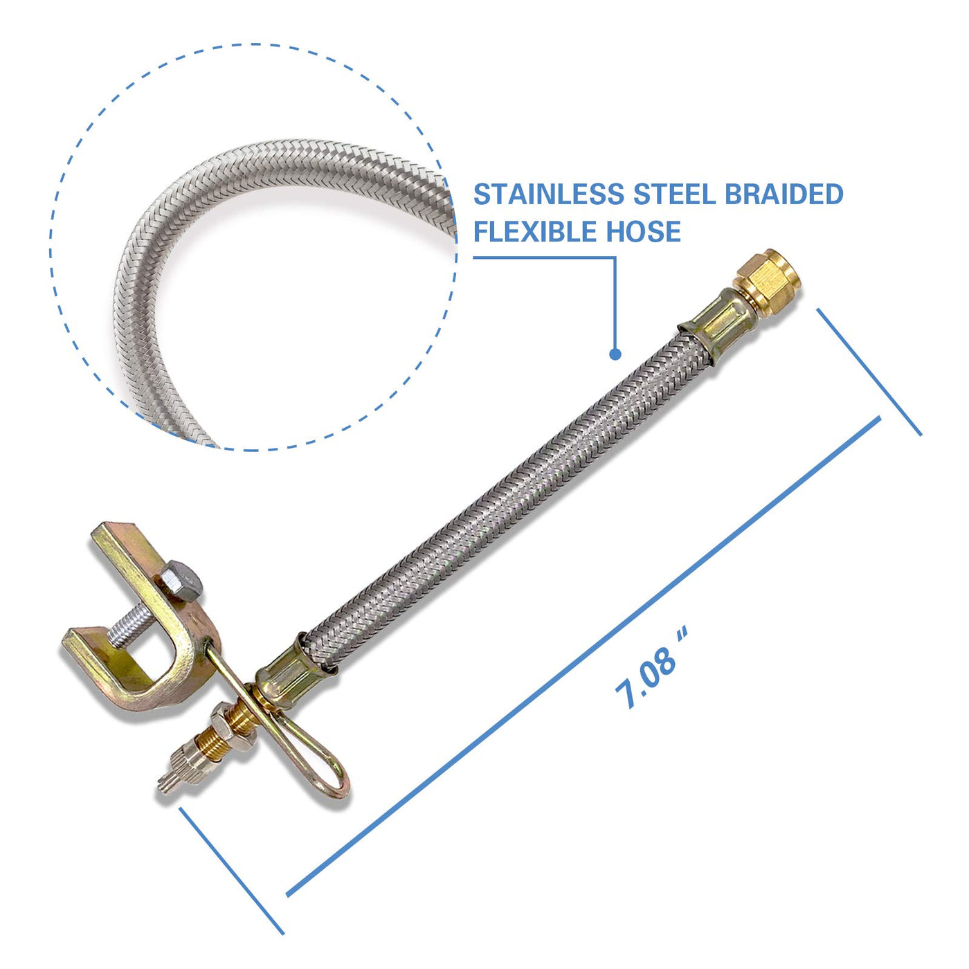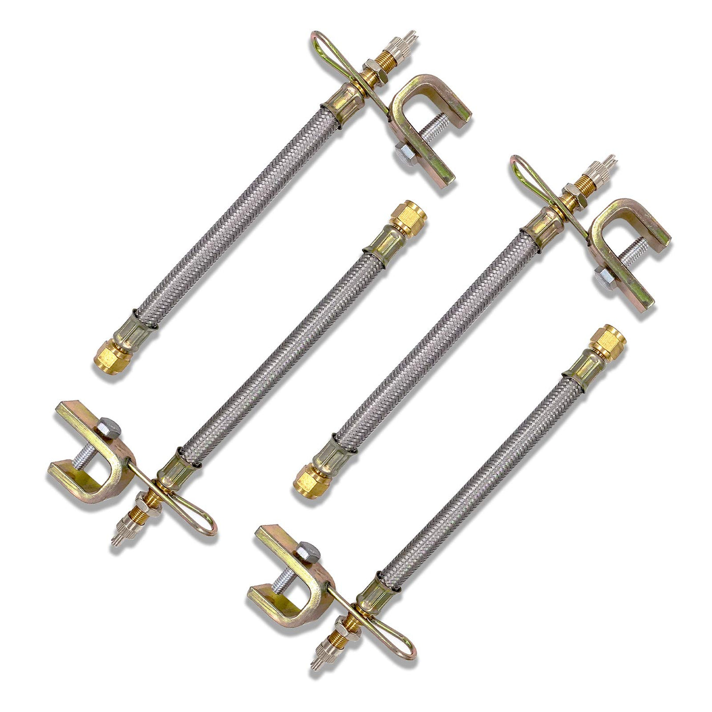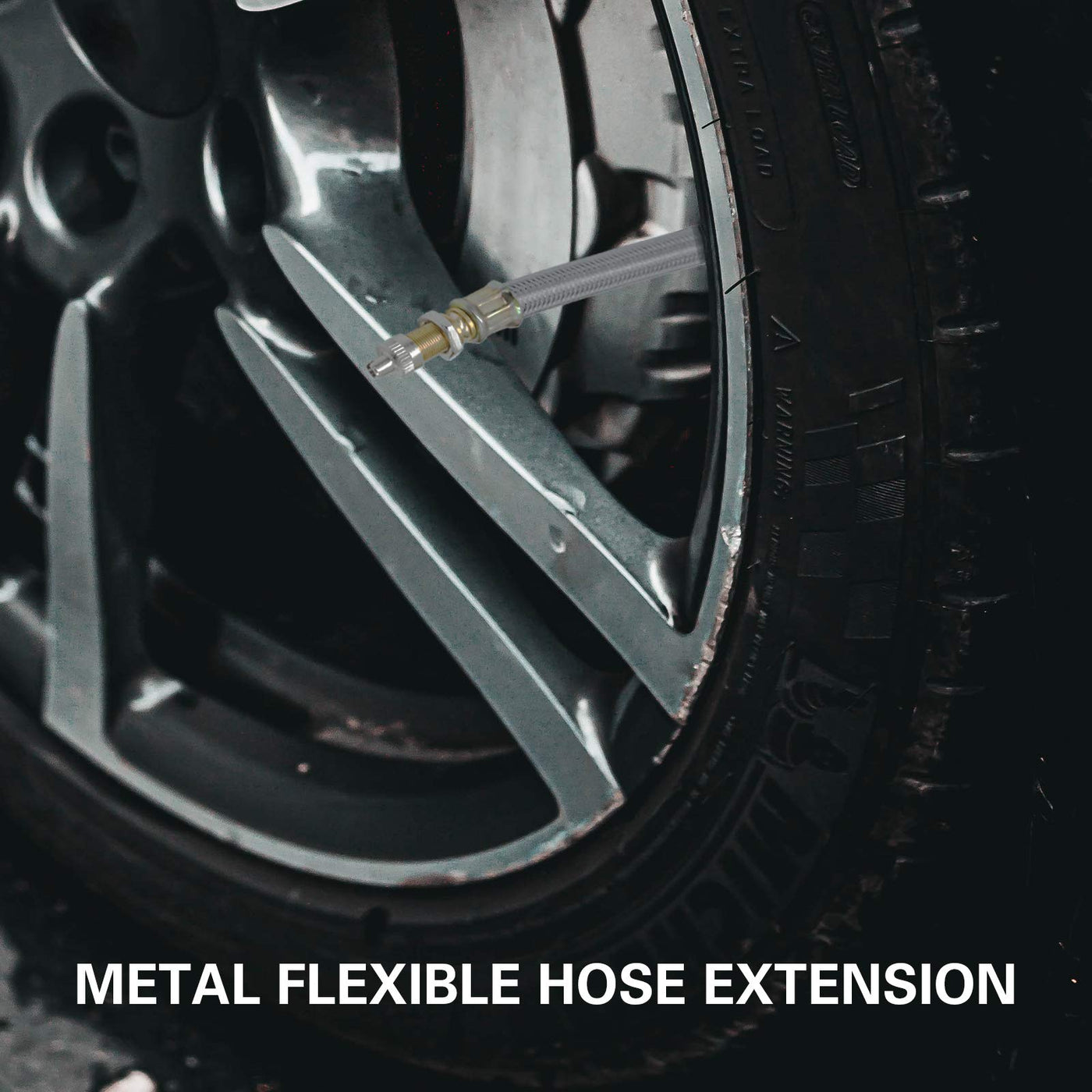 The tire Valve Stem Extension is made of EPDM rubber, which has the advantages of bending resistance, high strength and corrosion resistance. The flexible hose is braided 304 stainless steel, which is beautiful, durable, strong, anticorrosive and anticorrosive. With hexagon interface, it is much easier to install than any other products. And thick pure copper material can withstand greater torque. Each extension is equipped with an antirust iron Rim Clamp. The open space of the Clamp is 16mm (0.625 inches)
