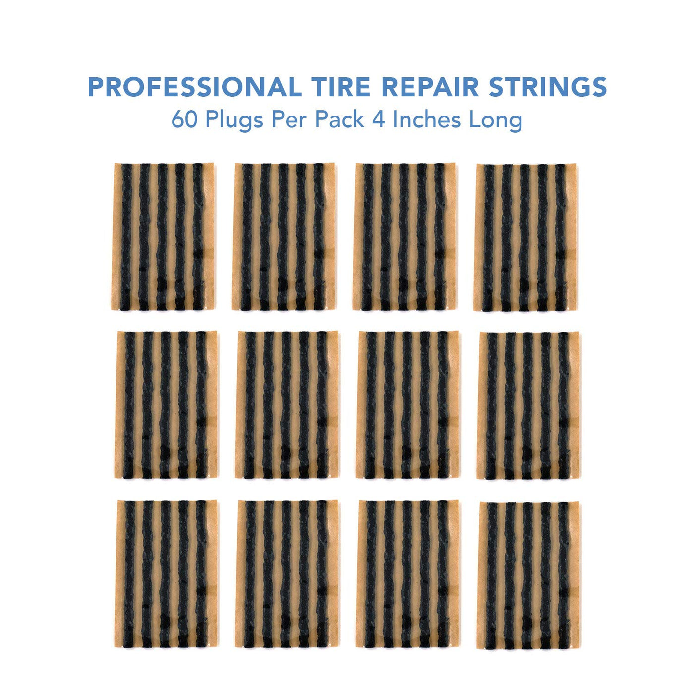 Ckauto 60Pcs 4'' Black Tire Repair Strings, Automotive Tool Tire Repair Plugs For Tubeless Off-Road Tires Car, Bike, Atv, Utv, W