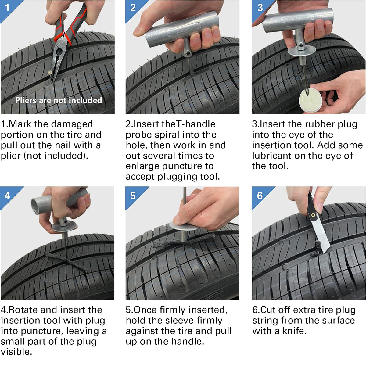 Q: How easy is it to use the CKAuto Tire Repair Kit for fixing a flat tire?A: The CKAuto Tire Repair Kit is user-friendly and allows you to repair punctures without removing the tire from the rim. It comes with detailed instructions, making it accessible for anyone, regardless of their repair experience, to fix a flat tire quickly and effectively.