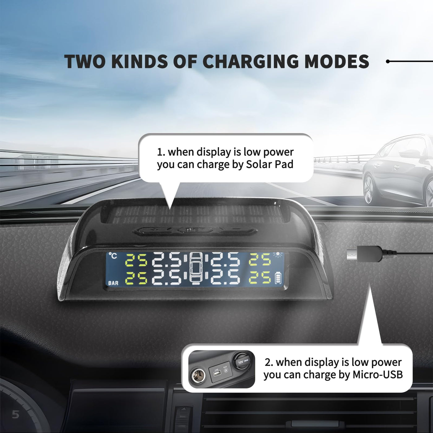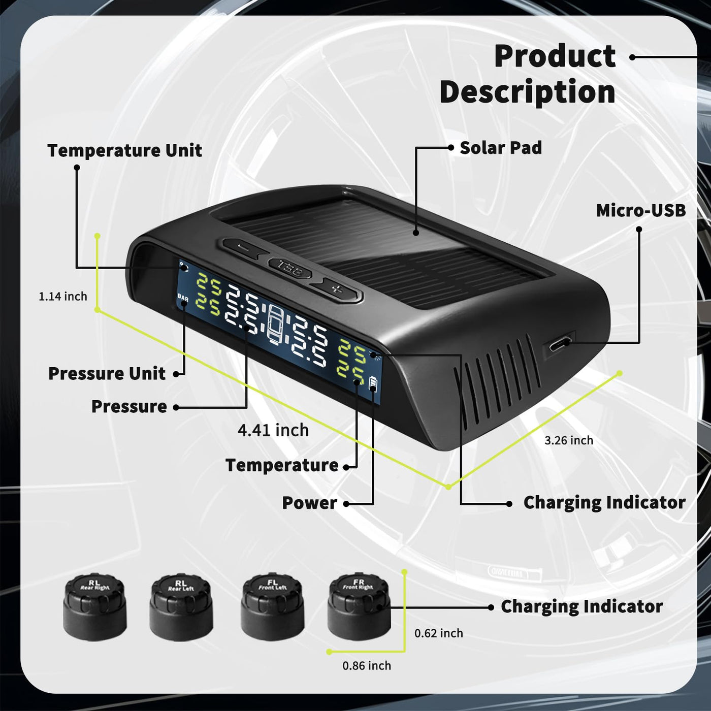 Cozy Blue Solar Powered TPMS Tire Pressure Monitoring System - TPMS for Car and SUV, Include 4 Sensors, Real-Time Pressure and T