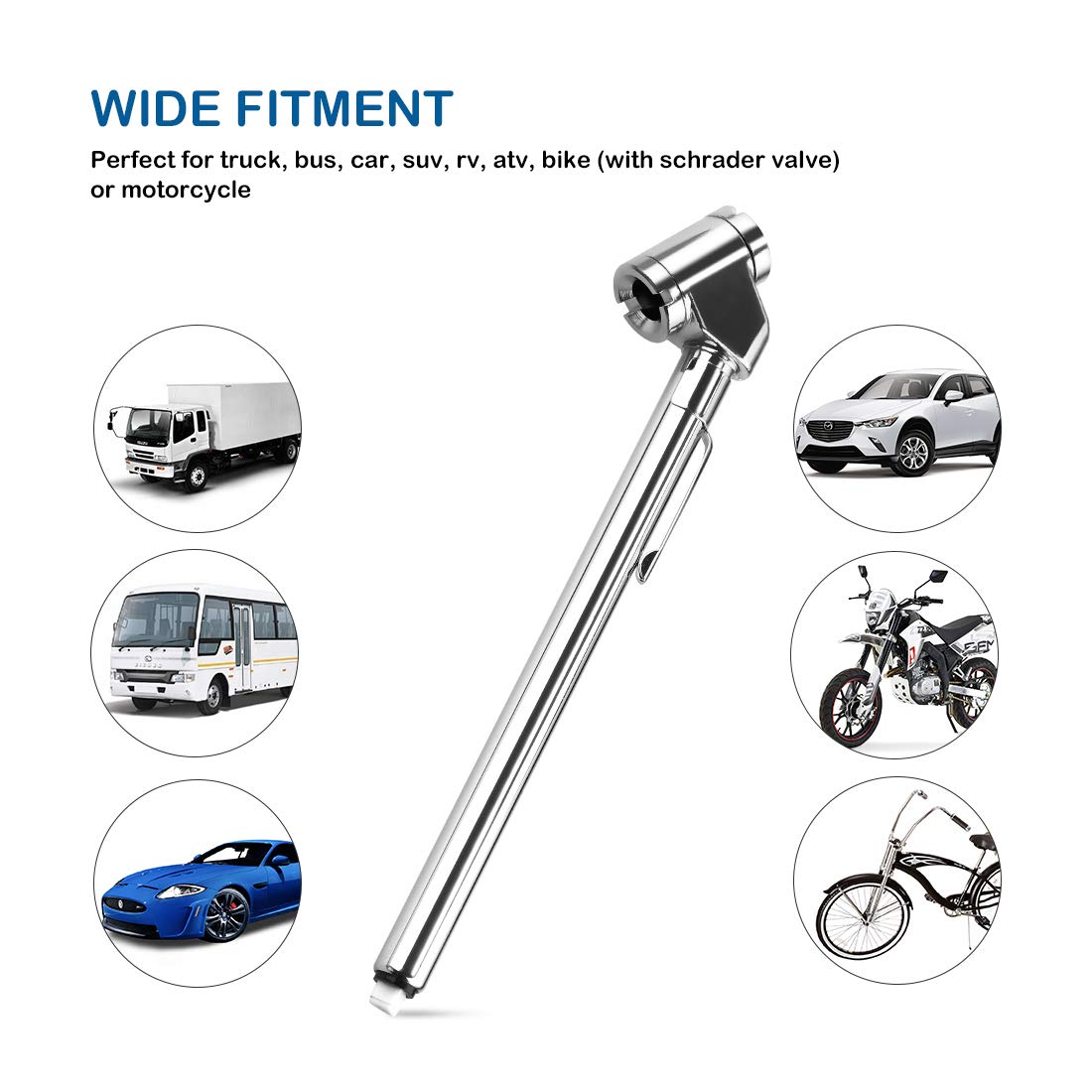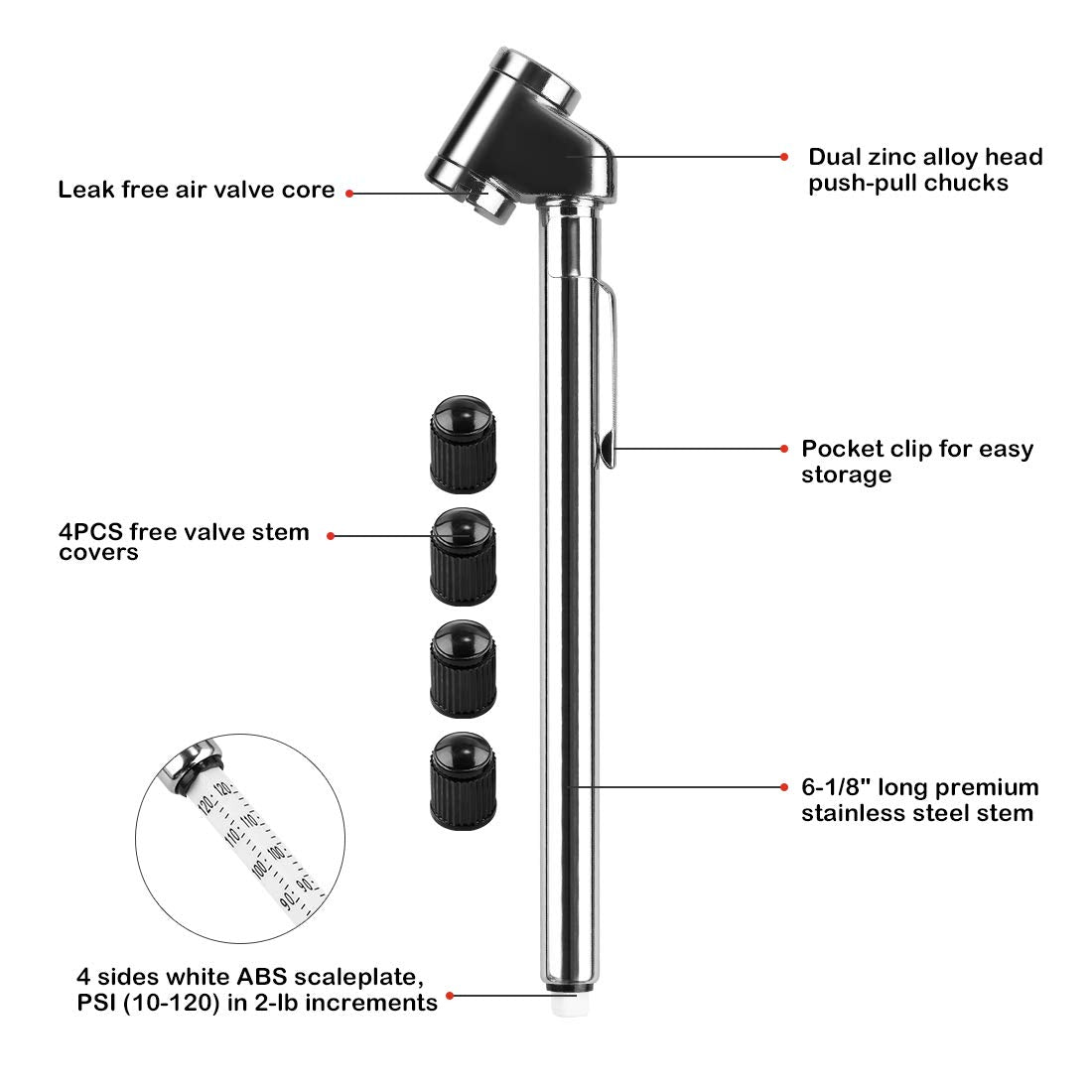 Czc Auto Pencil Tire Pressure Gauge, Dual Head Trucks Air Gage, Accurate Mechanical Dually Chuck Wheel Service Checker, Stainless Steel Stem For Car Rv Atv Motorcycle Bike, 10-120Psi (Silver, 1 Pack)