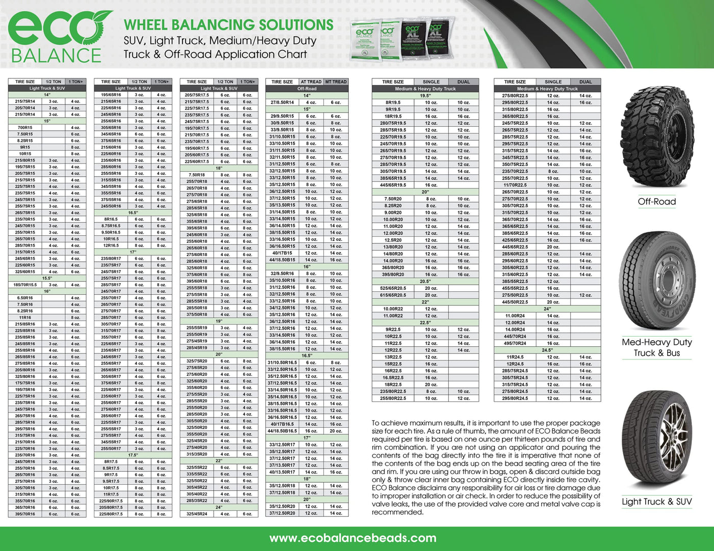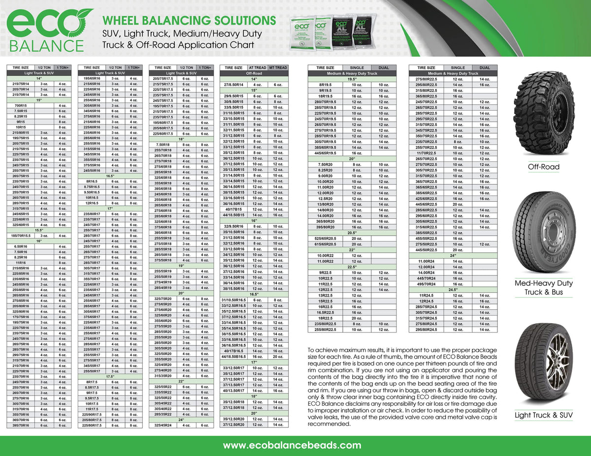 ENHANCED VEHICLE PERFORMANCE - ECO Balance XL glass balancing beads for trucks, motorcycles, and off-road vehicles provide an automatic, readjusting, trouble-free, lifetime balance of the entire wheel assembly | EASY TO USE APPLICATION - The bag-in-bag balance bead application makes it easy to install. Place small bead bags side your tire when mounting new tires on to the wheels * (4) 4oz Balance Bead Bags, (4) Valve Caps | INCREASED TIRE LIFE - ECO Balance XL EXTREME condition balancing beads reduce the rolling resistance with centrifugal force, reducing and providing a more even wear across your tires *ECO Balance does not void any tire or wheel warranties | IMPROVE FUEL ECONOMY - Balancing beads help reduce resonating suspension synchronizing by balancing the wheel assembly with centrifugal force, decreasing fuel consumption over speeds of 55 mph, and increasing fuel savings | ENVIROMENTALLY FRIENDLY - Made of reusable, recyclable 99.9% tempered glass bead spheres that are installed side the tire and wheel assembly, preventing any accidental contamination to the environment or damage to the side of your wheels