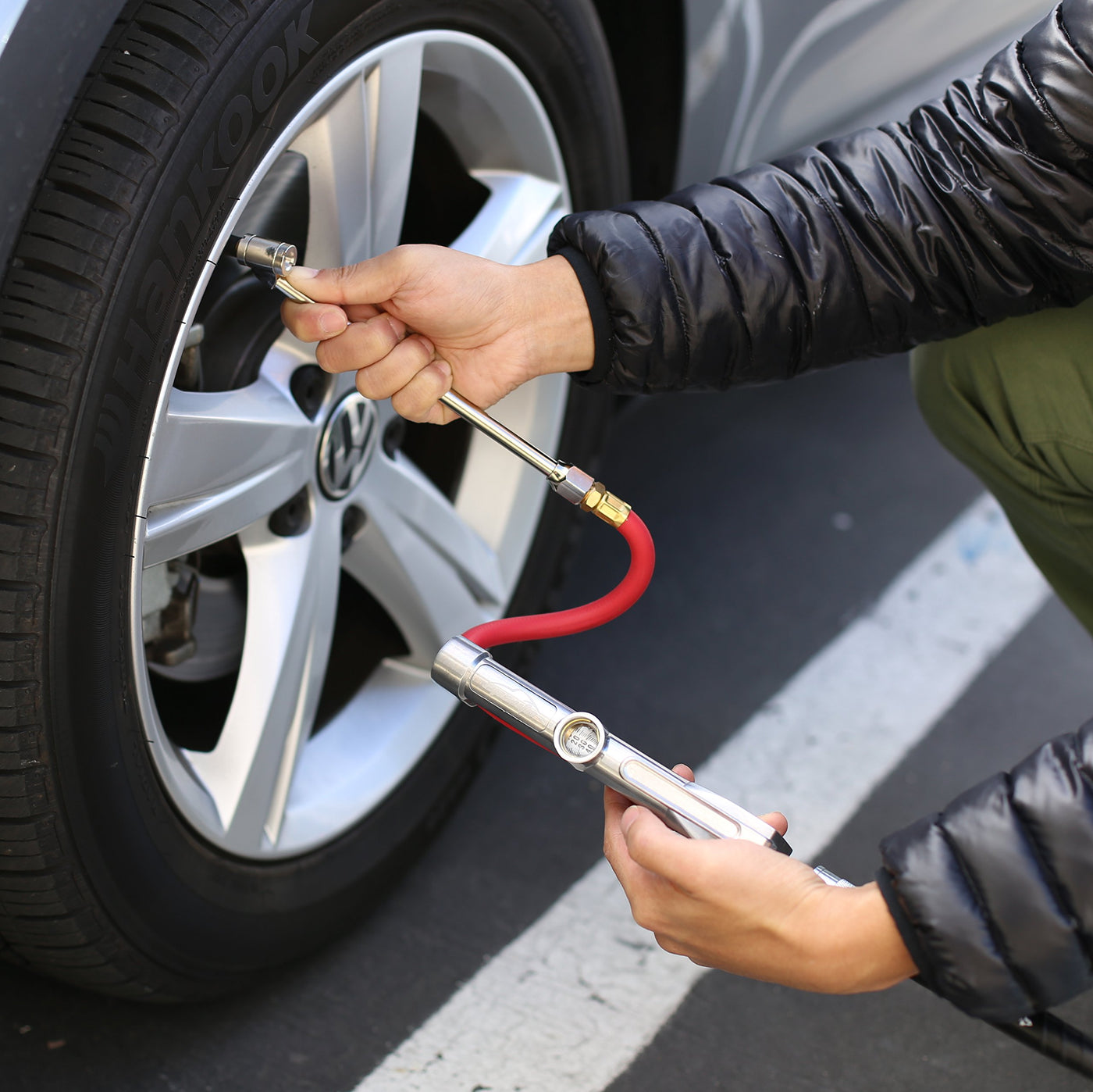 EPAuto Commercial Grade Dual Head Tire Inflator Gauge with Air Hose, 1/4'' NPT, 12'' Rubber Hose, 10-160 PSI