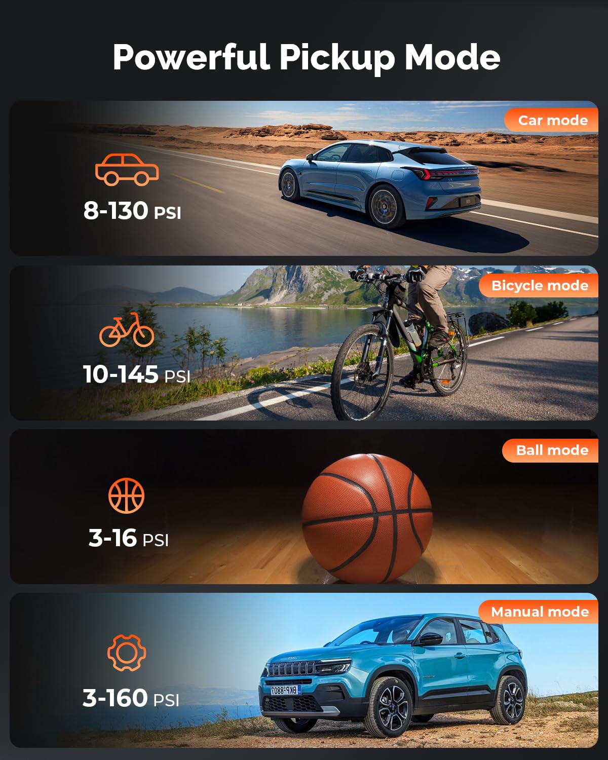 ETENWOLF ZEPHYR S3 Tire Inflator Portable Air Compressor, 1 Min Fast Inflation and 100% Duty Cycle, 160 PSI Air Pump for Cars, S