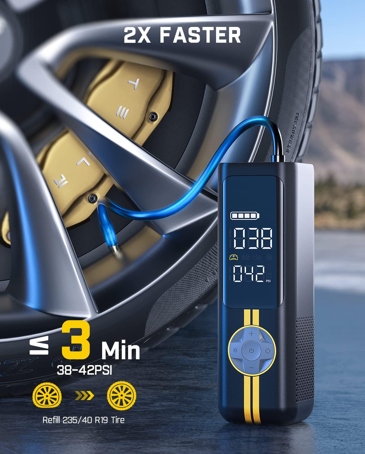 Q: How fast can the Fanttik X8 APEX inflate a tire?A: The Fanttik X8 APEX can inflate a 26.4 inch tire of a Tesla car in just 74 seconds, making it 2X faster than many traditional tire inflators.