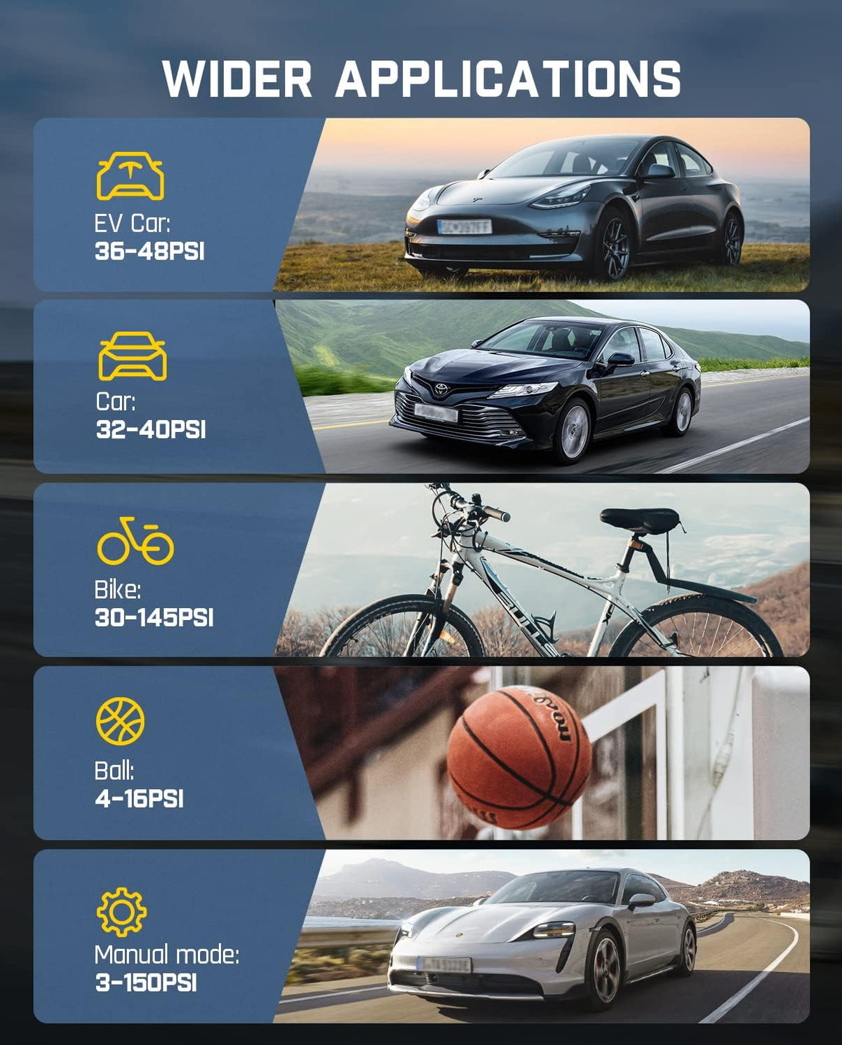 Q: What is the maximum pressure the Fanttik X8 APEX can achieve?A: The Fanttik X8 APEX can achieve a maximum pressure of 150 PSI, allowing it to inflate various types of tires including those for electric cars, motorcycles, and bicycles.