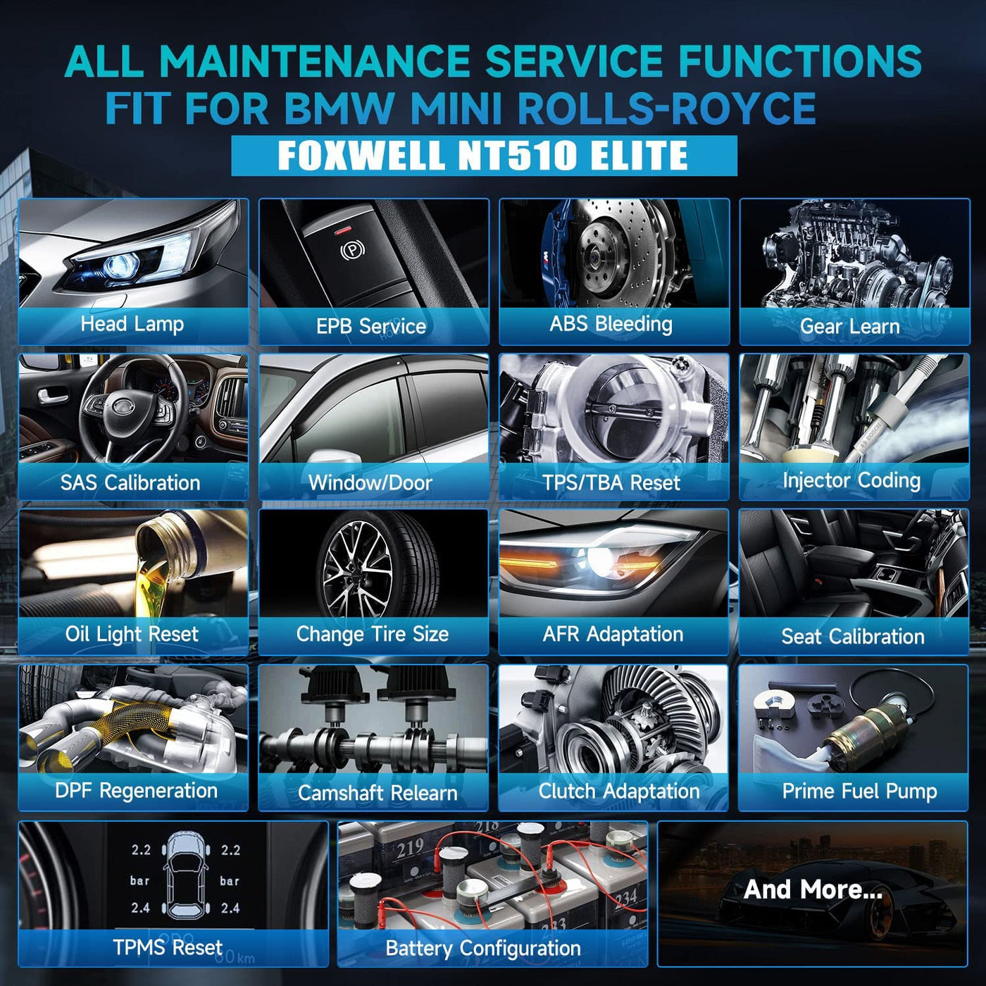 Foxwell Nt510 Elite Scan Tool Fit For Bmw Scanner Full Diagnostic Tool Obd2 Scanner, All System Bi-Directional Control Code Read