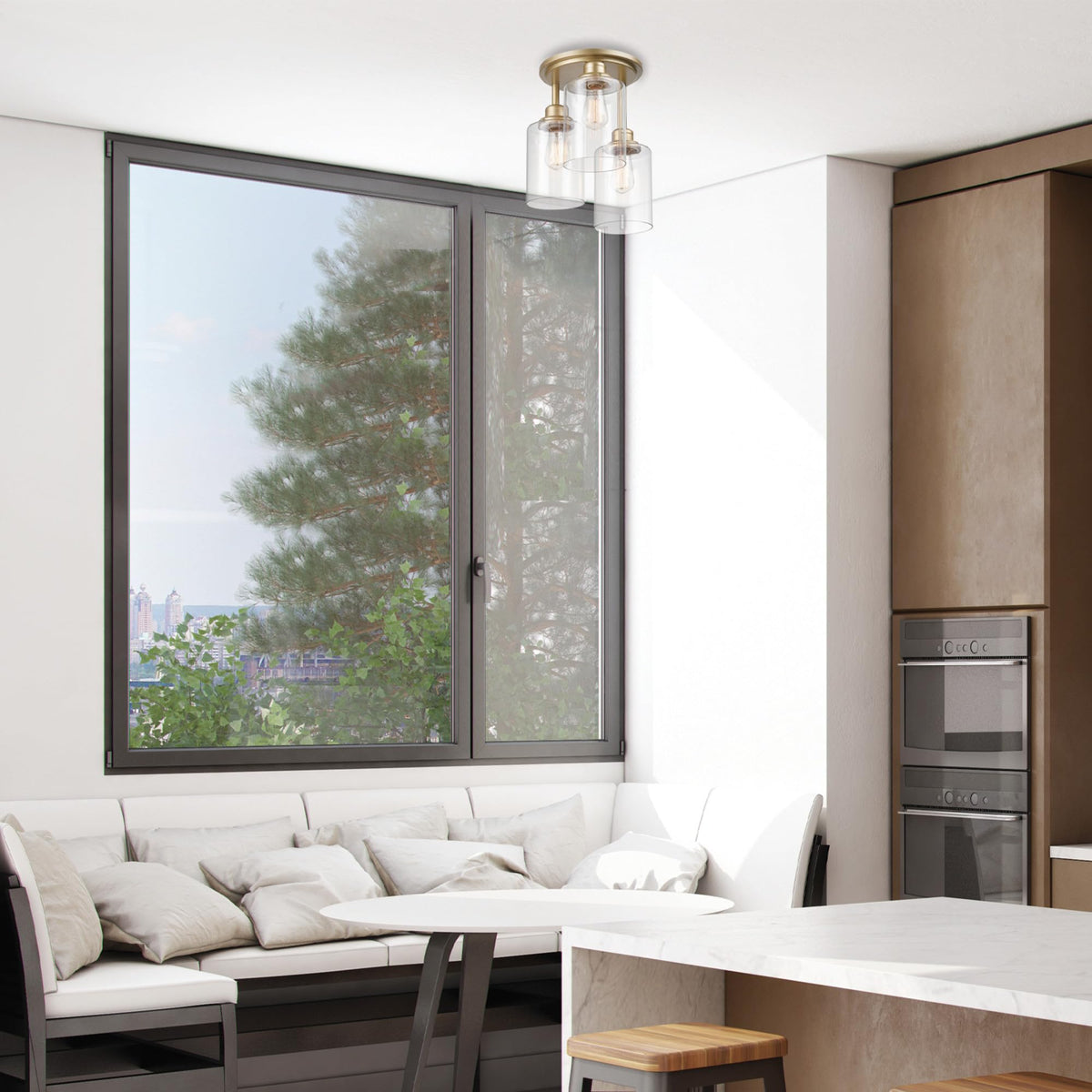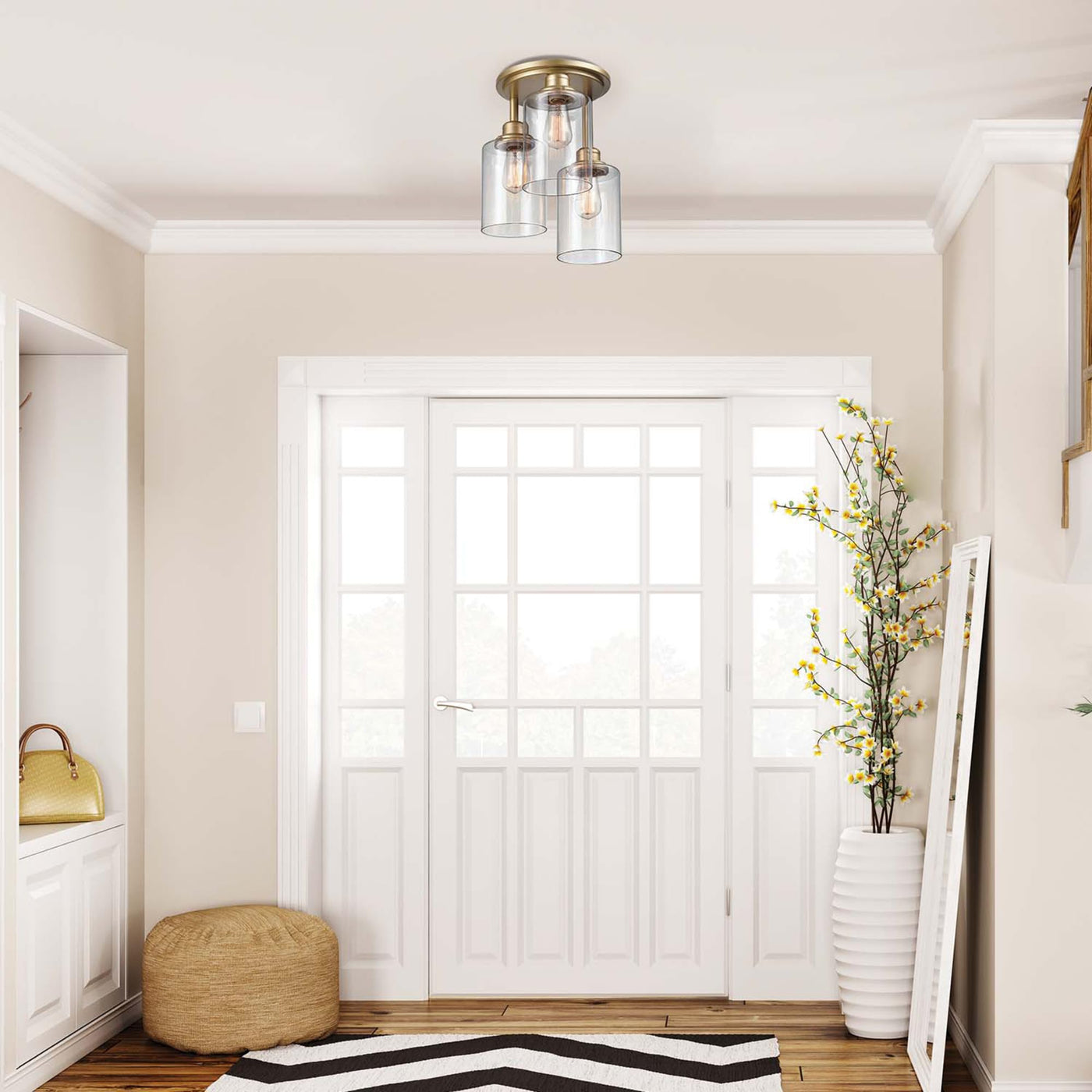 Globe Electric 65457 3-Light Flush Mount Ceiling Light, Matte Gold, Clear Glass Shades, Ceiling Light Fixture, Light Fixtures Ce