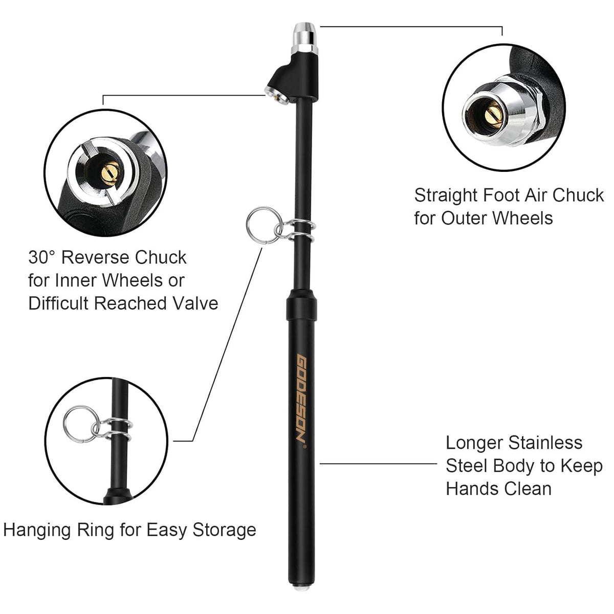 Godeson Heavy Duty Tire Pressure Gauge, Straight-On Dual Head Tire Air Gauge Range 10-150Psi, Extended Tube Tire Gauge Suitable