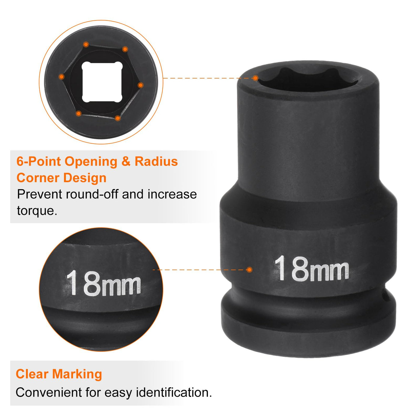 Q: What features enhance the durability of this impact socket?A: The durability of the HARFINGTON socket is enhanced by its radius corner design, which increases contact surface area and evenly distributes force, preventing slippage and extending the service life of the tool.