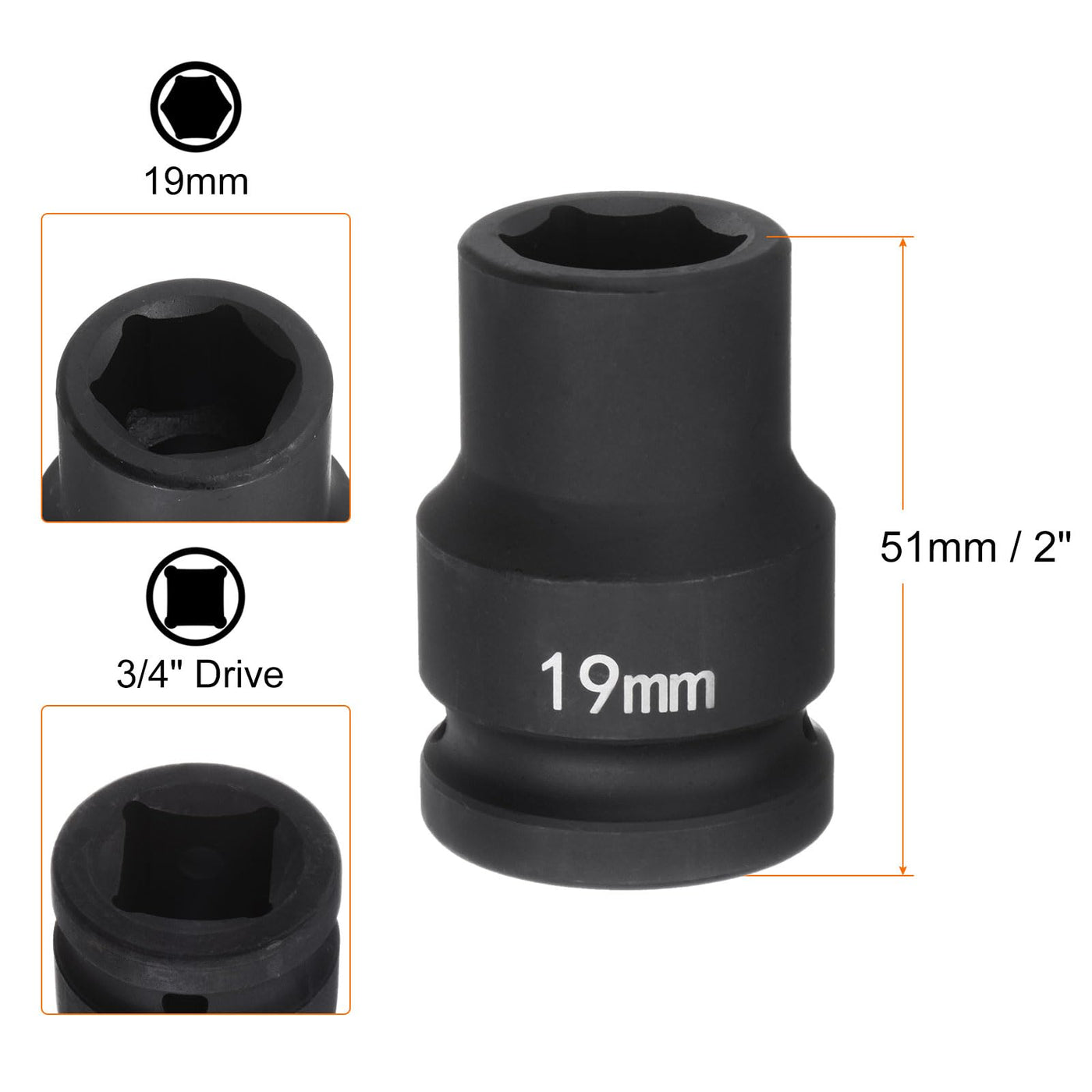 Q: What is the size of the HARFINGTON 6-Point Impact Socket?A: The HARFINGTON 6-Point Impact Socket features a 3/4-inch drive and a 19mm socket size, making it suitable for a variety of automotive and mechanical applications.