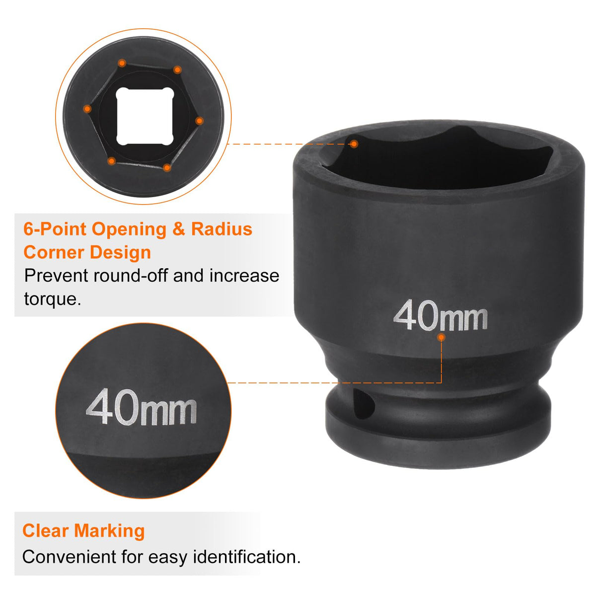 Made Of 40Cr Alloy Steel With The Phosphated Surface To Ensure Its High Hardness, Impact Resistance, Wear Resistance, Corrosion Resistance And Rust Resistance.The Specifications Are Clearly Marked On The Surface Of The Socket, Which Is Easy To Identify And Improves Work Efficiency.The Radius Corner Design Increases The Contact Surface, And The Force Can Be Evenly Distributed To The Plane Of The Fastener, Extending The Service Life Of The Tool.The 6-Point Opening Can Fit The Hexagonal Fastener Tightly And Firmly, Preventing Slippage Or Loosening During Operation, And Can Apply Maximum Torque.The Axle Nut Socket Is Suitable For Automobile Maintenance, Mechanical Equipment Repair, Construction, Woodworking, Home Maintenance, Etc., Which Can Be Used To Install, Disassemble And Repair Fastening Bolts, Shaft Nuts, Bolts On Cars, Machines, Home Appliances, Engines, Etc.