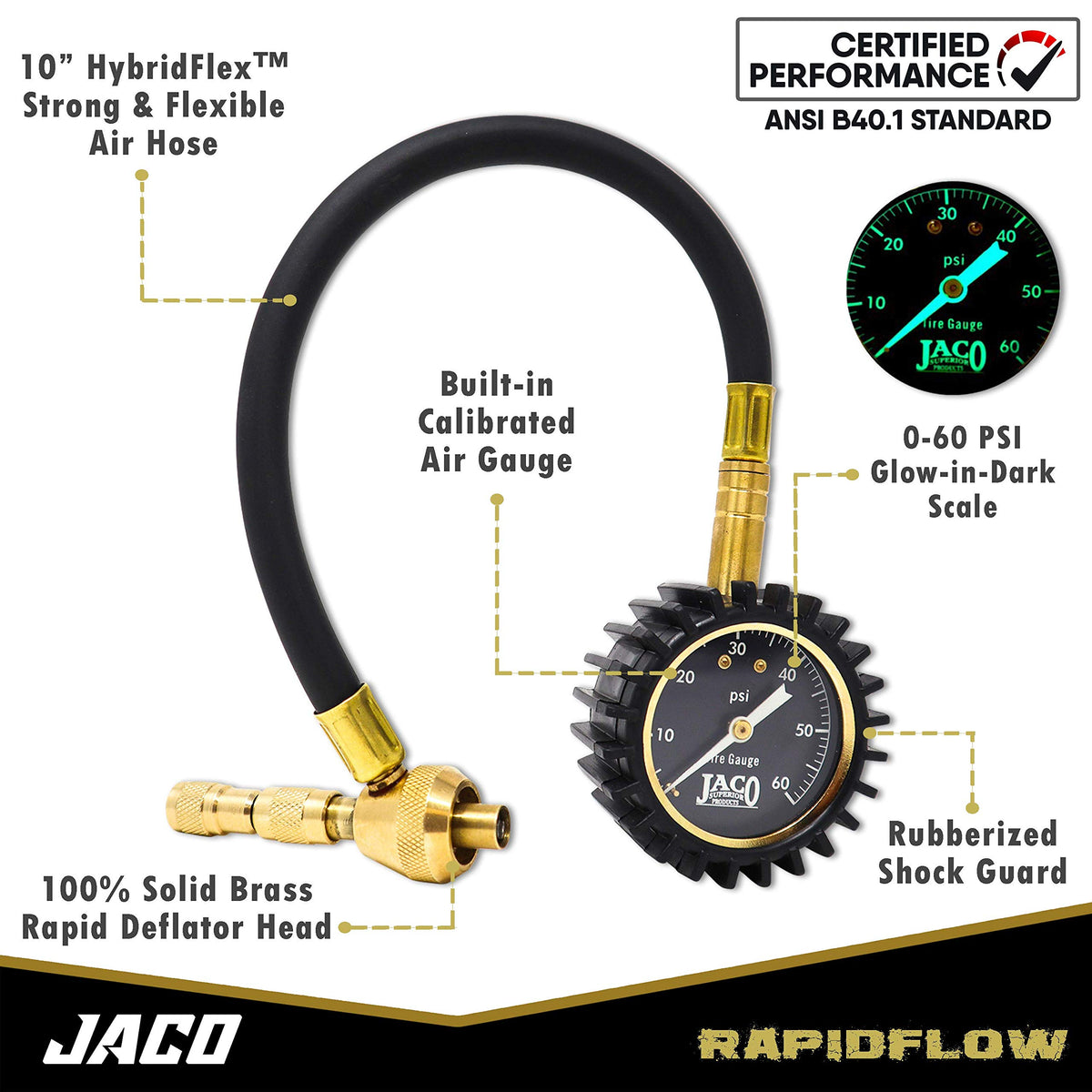 Jaco Rapidflow Tire Deflator With Gauge (0-60 Psi) | Rapid 4X4 Off Road Air Down Kit