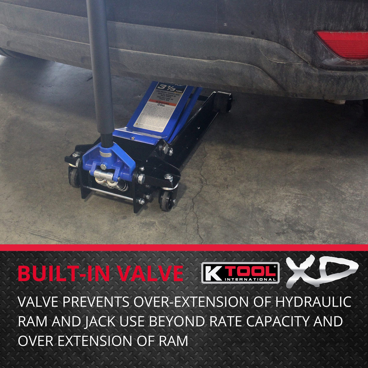 Q: Is the K Tool International floor jack safe to use?A: Yes, this floor jack is equipped with load-limiting and bypass valves that prevent over-extension and usage beyond its rated capacity, ensuring a safe lifting experience.