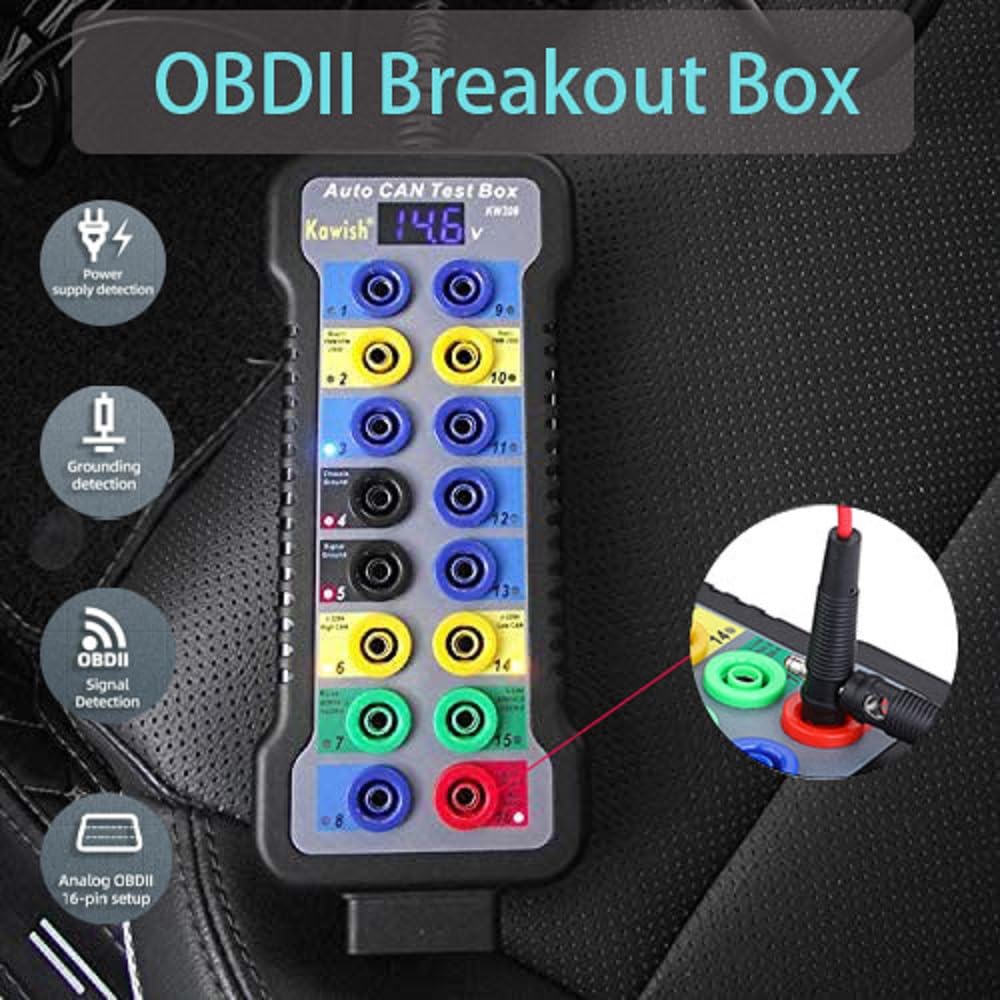 Kawish Obd2 Breakout Box Auto Obdii Protocol Detector 16-Pin Can Bus Test Breakout Box With Lcd Display For Obdii Protocol Commu