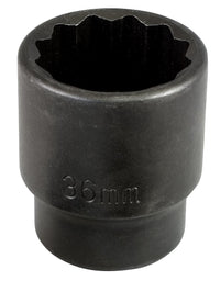 Q: What vehicles can the Lisle 22090 36mm 12-Point Axle Nut Socket be used with?A: The Lisle 22090 36mm 12-Point Axle Nut Socket is designed to fit various vehicles that require a 36mm axle nut or harmonic balancer bolt. It is commonly used in automotive applications, particularly for vehicles that have a 36mm axle nut specification.