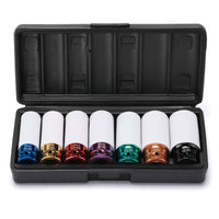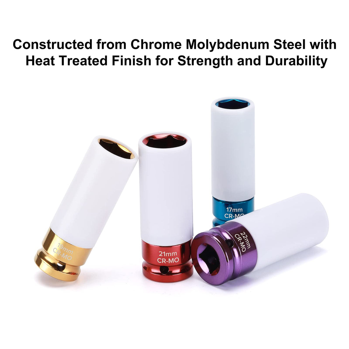 Mayouko 7Pcs 1/2 Inch Drive Lug Nut Deep Impact Socket Set,Thin-Walled Wheel Rim Protector Socket,Color Coded,Metric,Cr-Mo