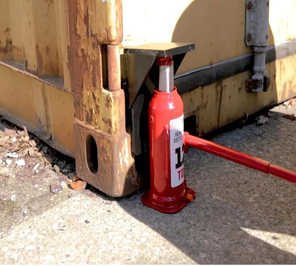 Shipping Container Jack Lug, Jack Leveling Attachment Min. Proof Load: 51,500 Psi Tensile Strength: 74,000 Lbs Materials: 1'' Steel Carbon Ground Clearance: 10'' Bottle Jack Sold Seperatly And Can Be Bought At Any Home Improvement Store Mytee Products Shipping Container Jack Lug Leveling Attachment Is What You Need When Your Storage Container Is Not Level With The Ground. Just Insert The Jack Lug Head Into The Bottom Of The Corner Casting Of The Container And Then Turn It Upside Down. Use A Hydraulic Bottle Jack (Sold Seperatly) To Raise The Container Off The Ground. You Raise Your Container To The Leveled Height You Will Then Place Shims Or Wood Under Your Container To Make It Completely Level.