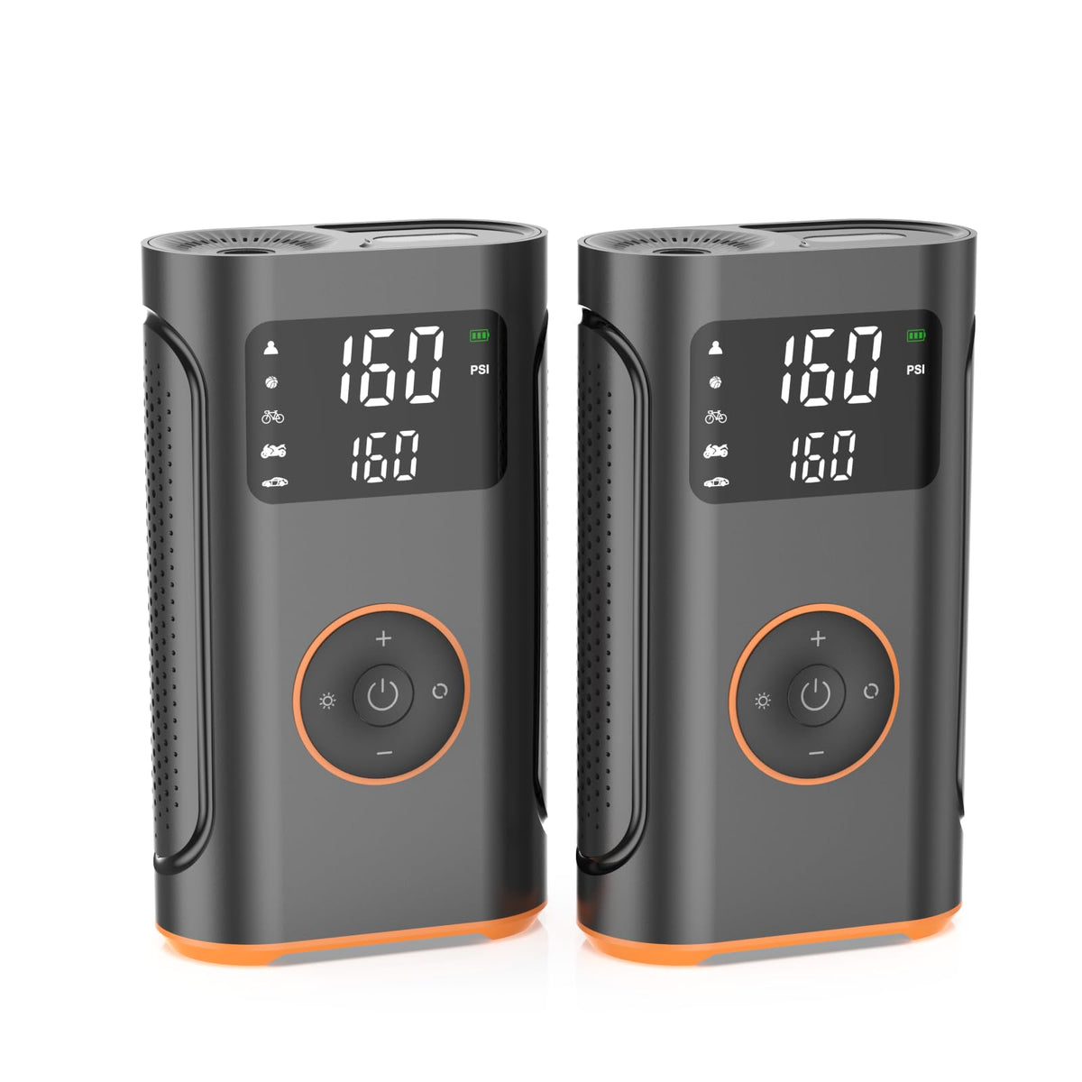 Enhance Your Inflation Experience with Our State-of-the-Art Air Compressor Are you tired of the time-consuming process of inflating tires, sports equipment, or recreational items with outdated or inefficient tools? Say goodbye to frustration and hello to efficiency with our cutting-edge tire inflator. Designed for modern users who prioritize performance and convenience, this inflator is a game-changer in maintaining optimal pressure for a variety of items. Let me guide you through why our tire inflator is the essential tool you need in your life Unmatched Flexibility: Whether it's car air pump, bike tire pump, basketball pump, or air mattress pump, our inflator's powerful 160 PSI maximum pressure ensures you're equipped to handle any task. With 5 inflation modes, including customizable settings, you can effortlessly adjust to the ideal pressure Precision Redefined: Say goodbye to guesswork with our integrated high-precision tire pressure gauge, boasting an accuracy of 1 PSI for perfect inflation every time. Stay informed with the easy-to-read LED display providing real-time updates Emergency Preparedness: More than just a tire inflator portable air compressor, our product features built-in LED, SOS, and flashing lights, making it a must-have in any emergency kit. Whether you're in low-light conditions or facing unexpected situations, we've got you covered Power On-The-Go: Never be caught with a dead phone or gadget again. With a TYPE-C charging port and 5V/2A USB output, our car tire pump doubles as a power bank, ensuring your devices stay charged when you need them most Multi-Functional Tool: Enjoy the convenience of a device that not only inflates but also acts as a power bank, LED light, and more. Why clutter your space with multiple tools when one can do it all Don't compromise on quality or convenience when it comes to inflating your items. Upgrade your inflation experience with our revolutionary inflatable pump and discover a new level of efficiency, reliability, and versatility. Embrace the future of inflation and make the smart choice for enhancing your lifestyle. Experience the difference with our state-of-the-art air pump today