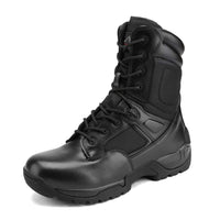 Q: How does the YKK side zipper enhance the functionality of these tactical boots?A: The YKK side zipper allows for easy on and off, providing convenience without compromising security. This feature is complemented by a hook-loop strap closure that ensures a snug fit, making these boots user-friendly for both daily wear and tactical situations.