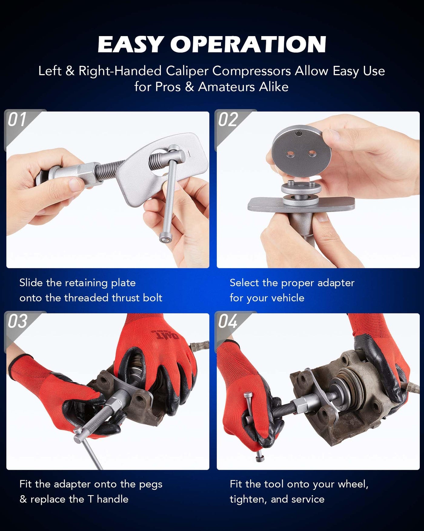 Q: Is the OMT Brake Caliper Tool easy to use for beginners?A: Yes, the OMT Brake Caliper Tool is user-friendly, making it suitable for both beginners and experienced mechanics. The included instructions guide you through the process of brake pad replacement and caliper piston reset.