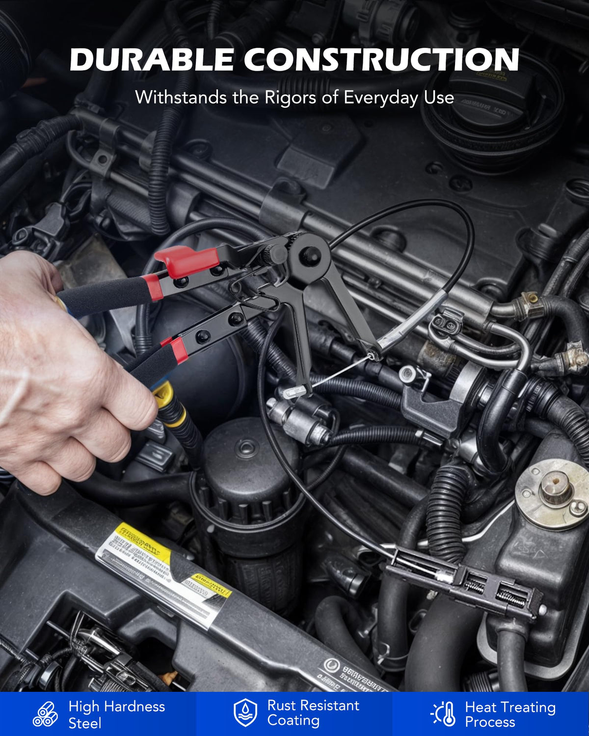 9pc Hose Clamp Pliers, Hose Clamp Remover Kit with Flexible Wire Long Reach Hose Clamp Clic R Type Swivel Jaw and Flat Band Pliers for Automotive Coolant Radiator Heater and Water Hose