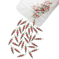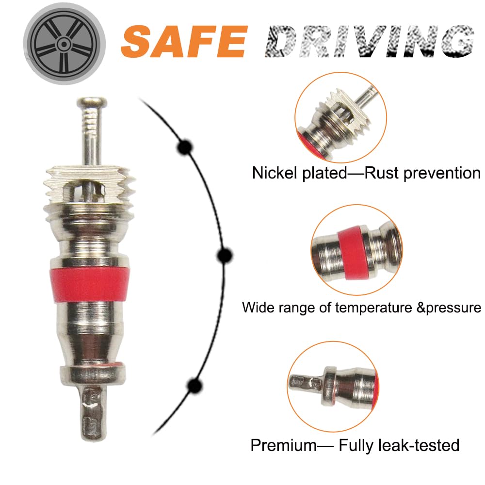 Product description: Application. Fits Schrader valve stems only. !!Not suitable for Presta valves. Corrosion and rust prevention Surface is nickel plated to prevent rust and corrosion . Extreme environments can still function normally Temperature range of 65F to 302F (-54C to 150C).Working air pressure up to 300 PSI. Universal Perfectly applicable to most trucks, cars, RVs, lawn mowers, motorcycles, Jeeps, bicycles, electric cars Product detail: Name: Tire valve core Material: Copper Color: Silver Package: 50 pcs/package Package Dimensions: H-2.76*W-3.94*Thickness-0.35 Inches Shipping Weight: 1.41 ounces Q&A: Why should we buy tire valve cores? The key to the airtightness of tires lies in the valve core. Due to damage from dust and rain, if the valve core is not replaced for a long time, it can lead to valve stem leakage. This will damage the tire and cause it to leak, thereby affecting safe driving. 2.Why we choose copper nickel plated tire valve cores? The internal material is copper, the surface is nickel plated to prevent rust and corrosion.It is an upgrade of copper valve core and zinc alloy valve core.