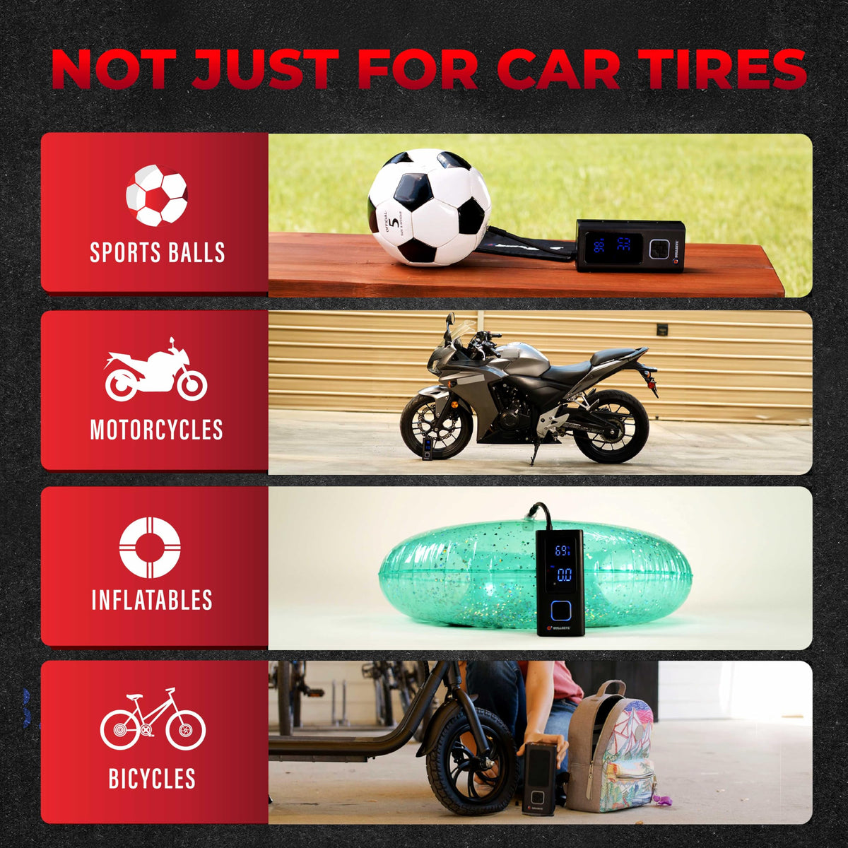 EASY TO CARRY: The Pocket Air Pump tire inflator portable air compressor, by Bullseye Pro, is engineered to fit comfortably in your glove box, backpack, or even your pocket! Whether you're on a road trip, biking adventure, or simply commuting, its ultra-compact size ensures that you
