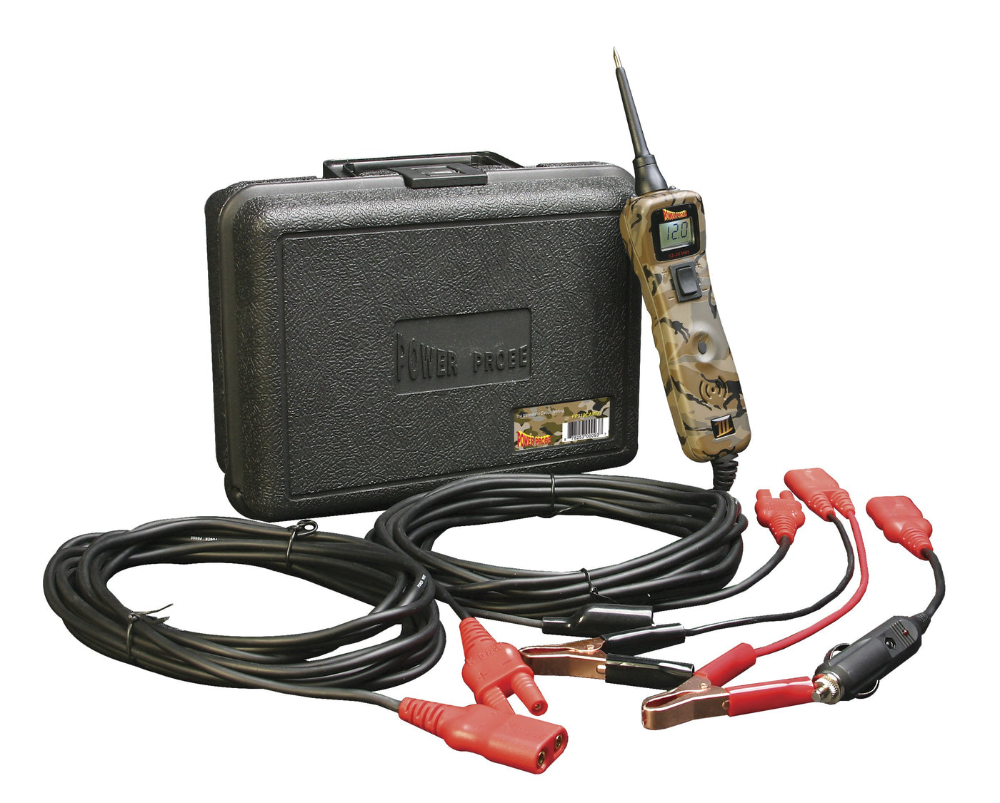 The Power Probe Iii Circuit Tester (Camouflage Design) With The Ability To Supply Power Or Ground With An Indicator Tone And Bright-White Led Headlamps. Features Digital Voltmeter, Minimum/Maximum, Audible Circuit Monitoring, 4Mm Standard Banana Jack And Auxiliary Ground For Component Testing. Includes Case And 20 Foot Extension Lead And 12 Volt Power Port Adapter. Works With 12 - 24 Vdc Systems.