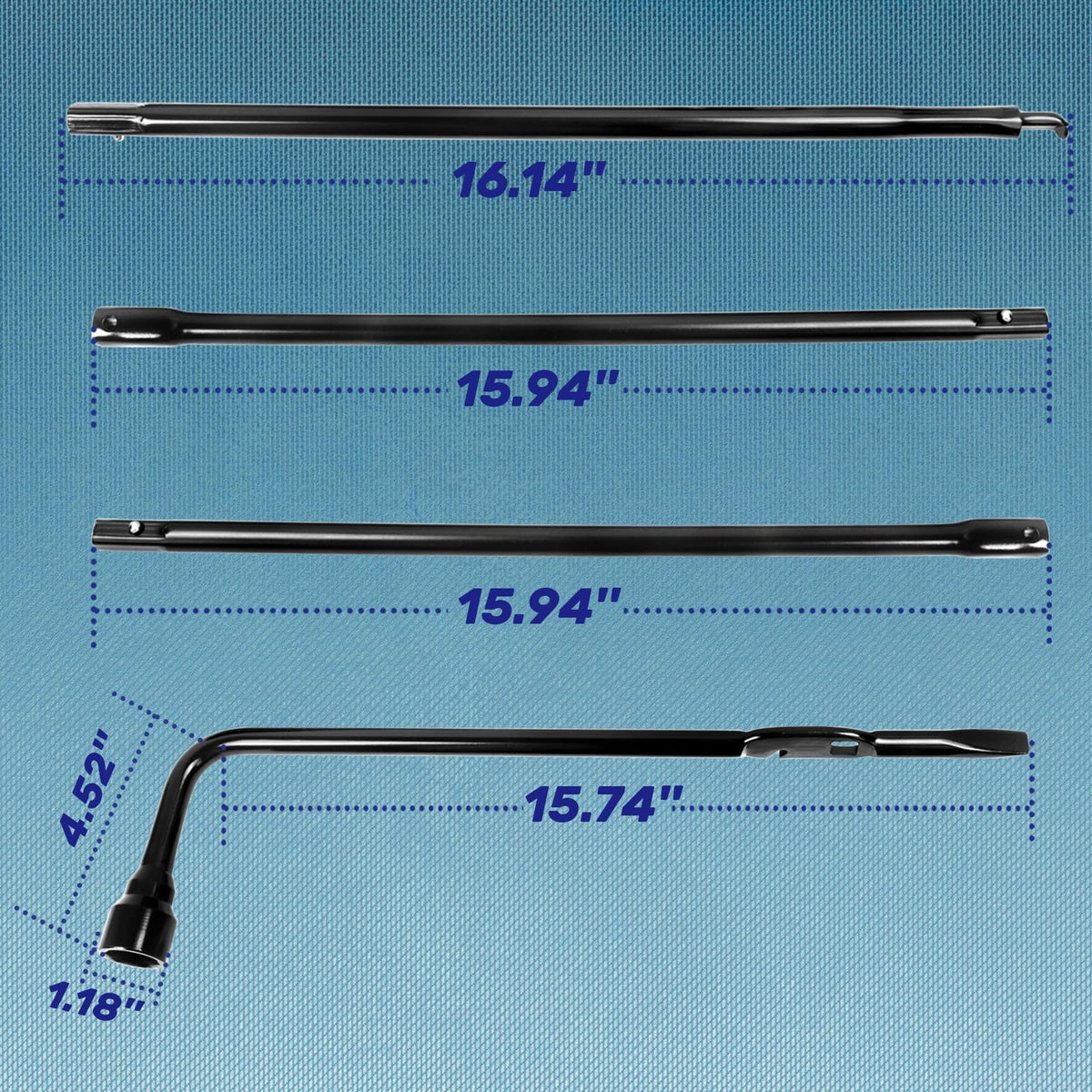 Product Description: Tire Lug Nut Wrench Introducing the Tire Lug Nut Wrench, a vital addition to your Silverado Spare Tire Tool Kit. Engineered for precision and reliability, this premium spare tire tool is compatible with various GM models, including the Silverado (1999-2019), Tahoe (1999-2019), Avalanche (2002-2013), Suburban (1999-2019), Sierra (1999-2019, excluding C/K body styles), Yukon (2000-2019), and Escalade (2002-2019). This wrench is specifically designed to effortlessly release, lower, or raise your spare tire whenever the need arises. Crafted from high-quality automotive-grade steel, our Tire Lug Nut Wrench features an upgraded design that emphasizes stability and strength. The innovative tubing construction offers a lightweight, rustproof solution, ensuring durability without compromising on ease of use. With replacement numbers: 15043672, 15854614, 20782703, 20782704, 20782706, 20782708, 22925285, 22969370, and 22969377, this tool provides seamless compatibility with your vehicle's requirements. Enhance your roadside assistance and make tire changes a breeze with the Reeauto Spare Tire Tool Kit, including the essential Spare Tire Jack Handle and Wheel Lug Wrench. Equip yourself with the reliability and quality that every driver deserves!