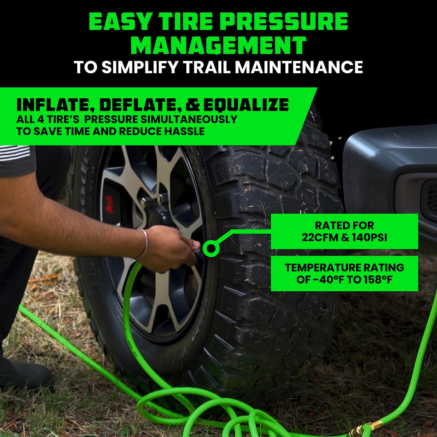 Rhino USA 4 Tire Inflation/Deflation System - Fits up to 155'' Wheelbase - Ultra Fast 4 Way Tire Inflator Hose Kit for Truck, Ca