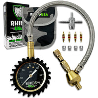 Rhino USA Rapid Tire Deflators with Gauge (0-60psi) Automatic & Adjustable Tire Air Down Tool - Large 2'' Easy Read Glow Dial &