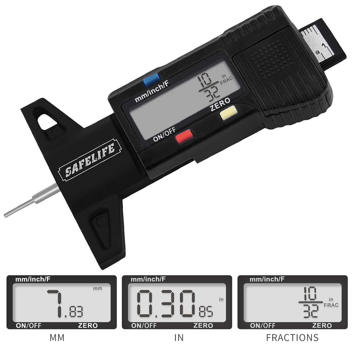 Safelife Digital Tire Tread Depth Gauge, 3 Modes-Fractional Inch, Decimal Inch And Millimeter, Zeroable Tire Tread Depth Gauge F