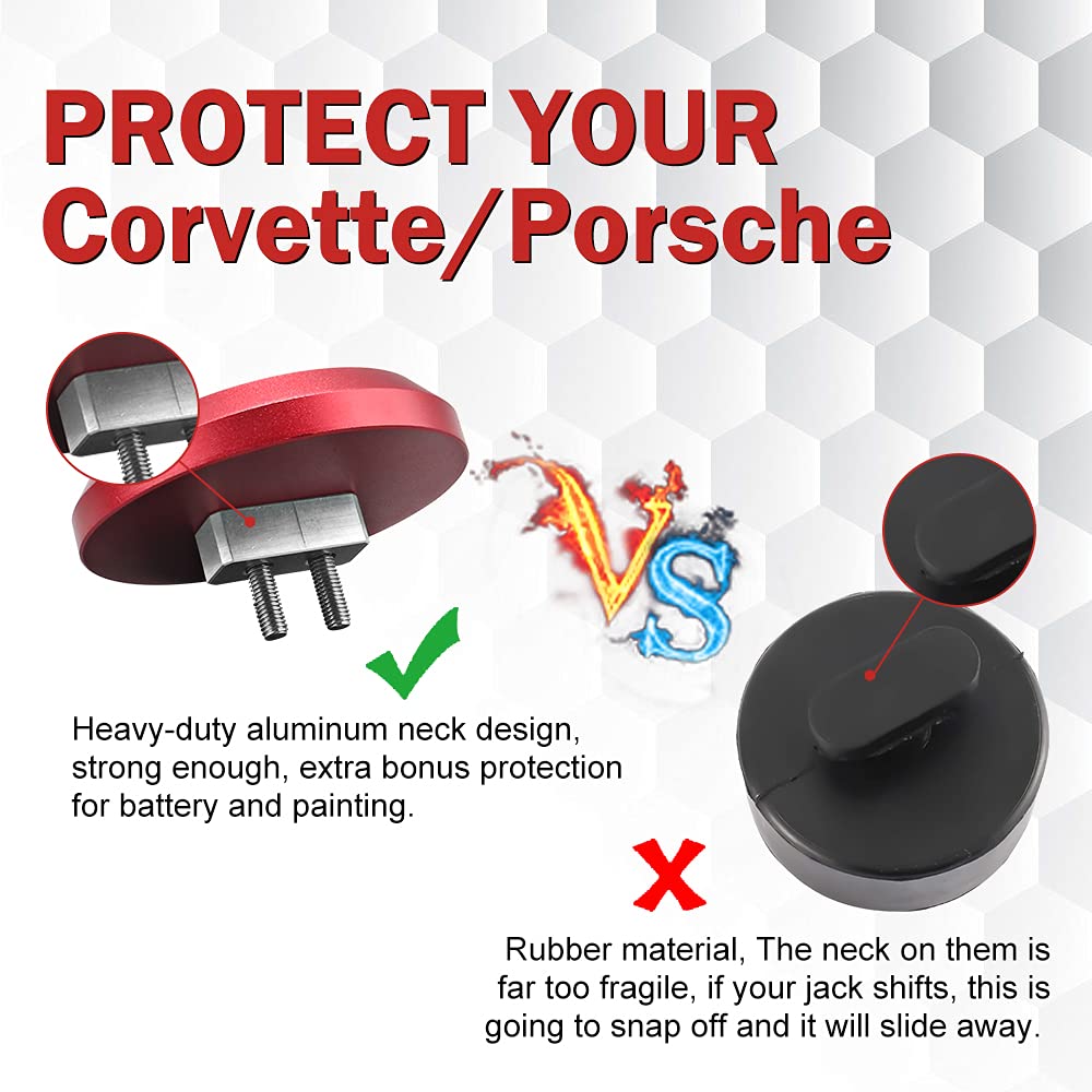 ADTOPI Corvette Jack Pucks - Billet Aluminum Jack Pad Adapter for 1997-2023 Corvette & Porsche Models - 4 Pack Red
