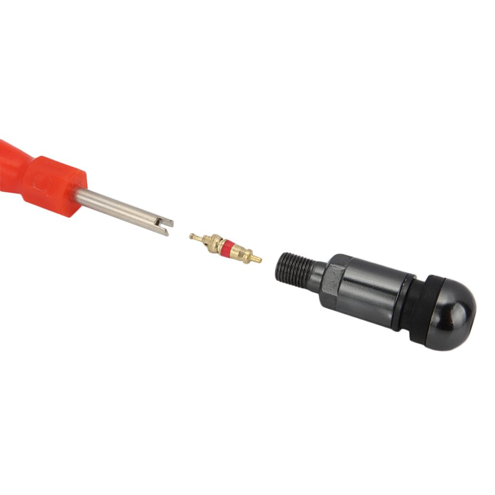 Q: What is the length of the valve core removal tool?A: The length of each valve core removal tool is 9.6 cm (or 3.78 inches), making it compact and easy to handle during tire maintenance.