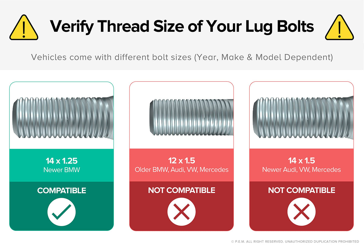 [ FITMENTS ] Compatible with BMW: 2014+ 2-Series, 2013+ 3-Series (F30 chassis or newer), 2014+ 4-Series, 2012+ 5-Series (F10), 2012+ 6-Series, 2010+ 7-Series Compatible with BMW: 2015-2020 M3, 2015-2020 M4, 2012-2020 M5, 2014-2020 M6, 2014-2020 M6 Gran Coupe Compatible with BMW: 2017-2020 X1, 2018-2020 X2, 2011-2020 X3, 2015-2020 X4, 2007-2020 X5, 2008-2020 X6 Compatible with BMW: 2014-2020 i3, 2014-2020 i8 Also compatible with MINI: 2007-2020 Cooper, 2013-2016 Cooper Paceman, 2011-2020 Cooper Countryman, 2016-2020 Cooper Clubman. [ INSTALLATION INSTRUCTIONS ] 1) Screw it into one of your lug holes at or near the 12 o'clock position 2) Put your wheel on. The wheel hanger will go through one of your wheel's lug holes 3) Tighten your wheels using your other lug bolts 4) Take the wheel hanger off 5) Install the last lug bolt 6) Torque the lug bolts in a star pattern using factory torque specs