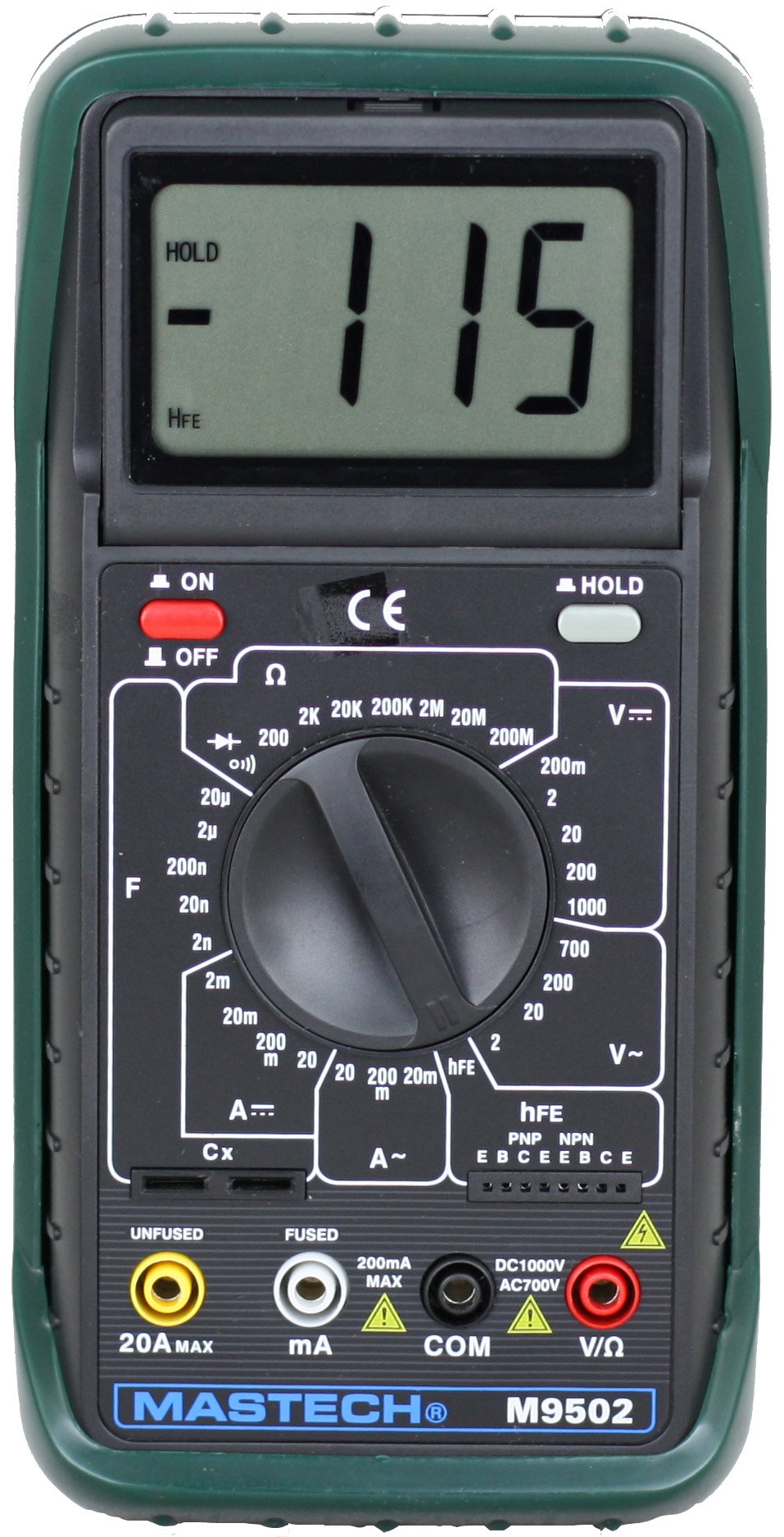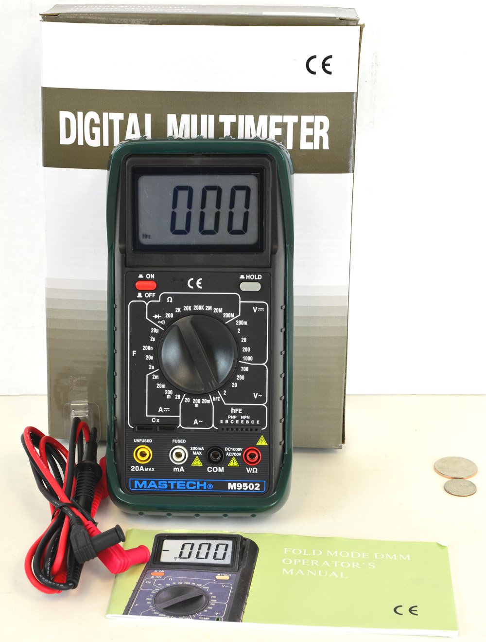 The Sinometer M9502 Is A Digital Multimeter With Its Unique Adjustable Display. It&Apos;S A Manual Meter With 31 Different Ranges, You Can Use It To Measure Both Ac And Dc Current As Low As A Few Micro Amps And Up To 20 Amps (Non-Fused, 15 Seconds Maximum). Other Functions Include Ac/Dc Voltage, Resistance, Continuity, Diode Check And Hfe. What&Apos;S In The Box: Sinometer M9502 Dmm Test Leads 9V Battery (Installed) User Manual