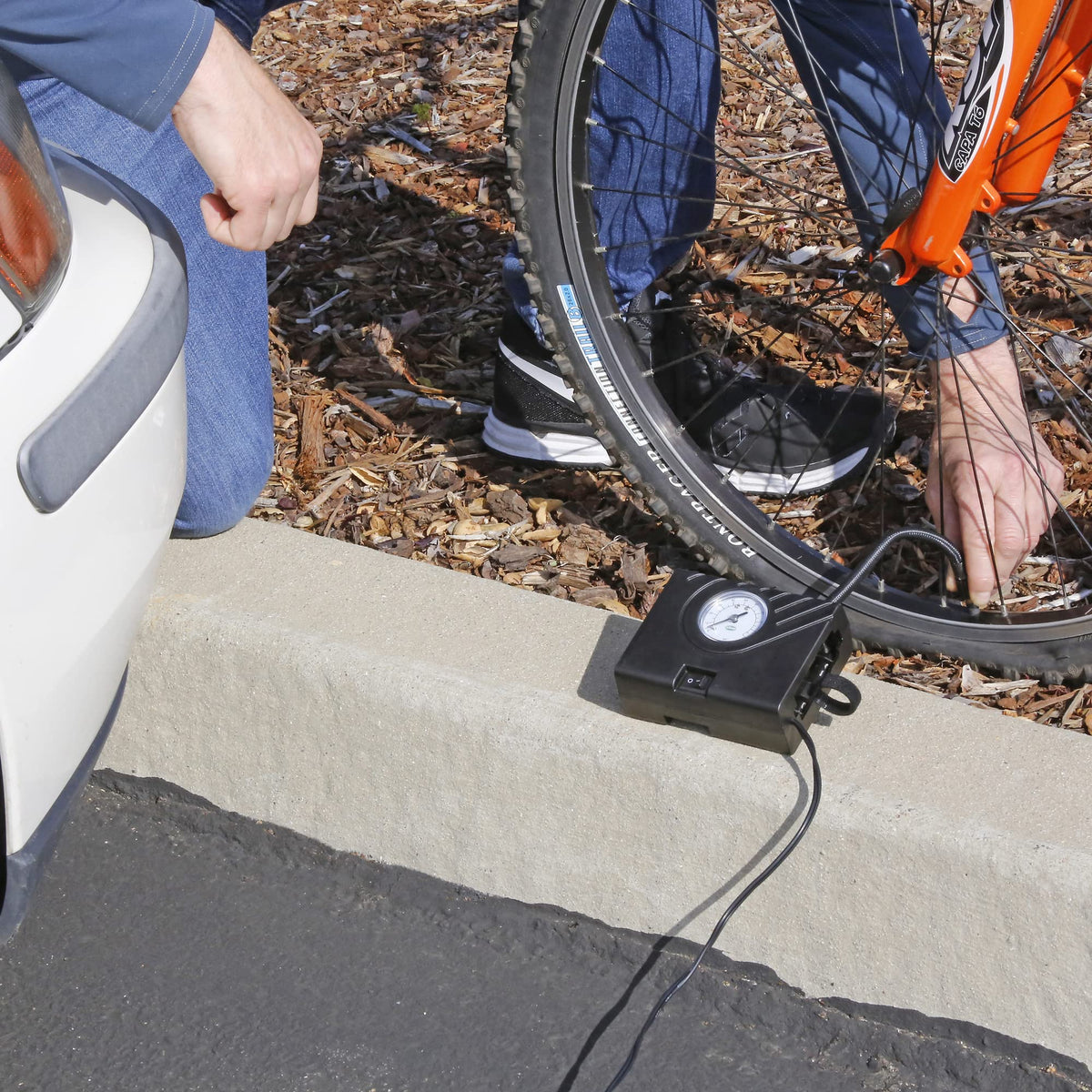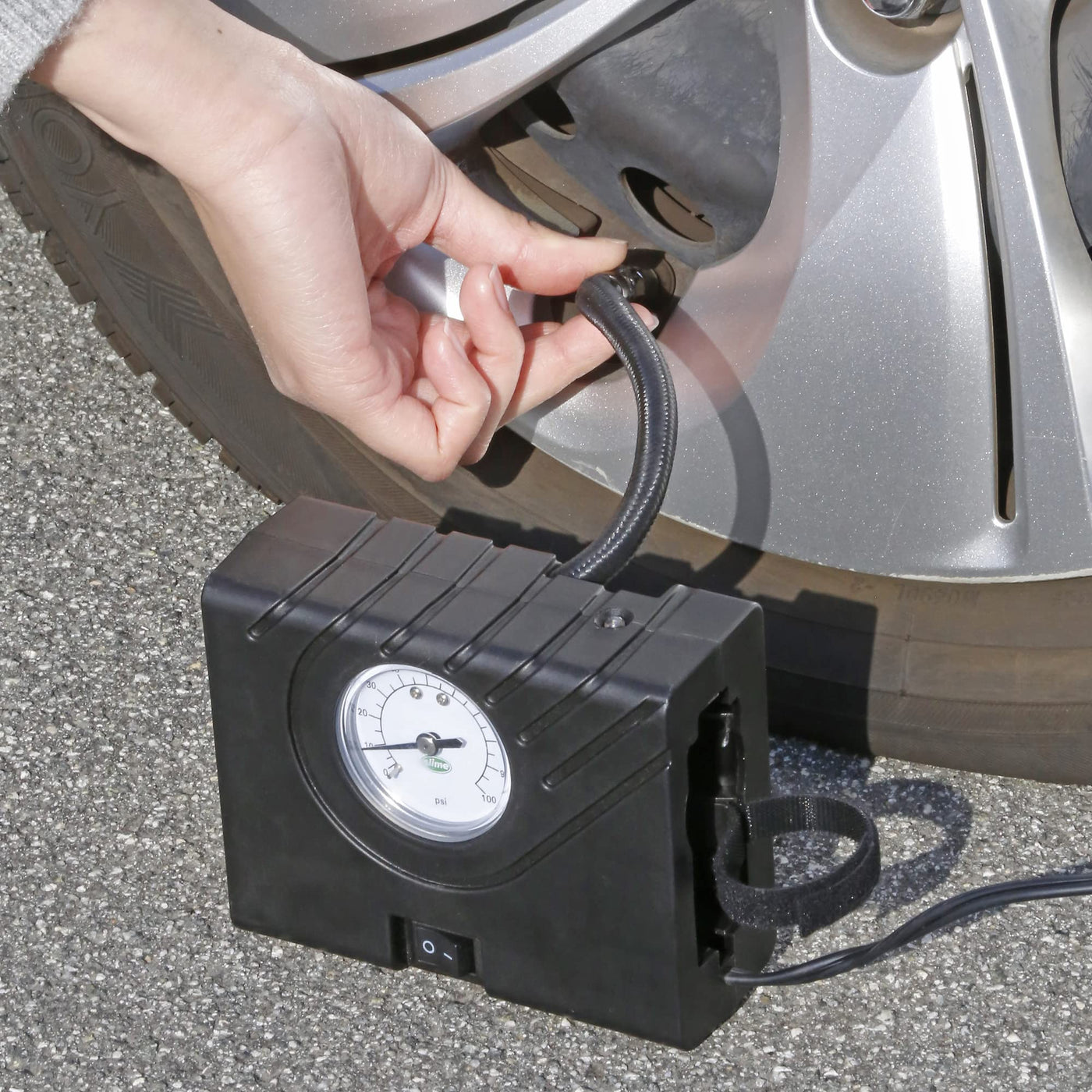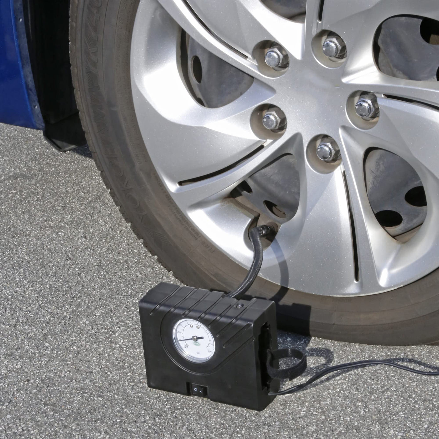 Compression, 50 PSI Voltage, 12 V Height, 16.6 cm Width, 5.8 cm Depth, 12.2 cmBuilt in tire pressure dial gauge Great for vehicles with TPMS Dual purpose, check pressure and inflate Inflates a mid sized car tire in 14 minutes Light weight and easy to carry